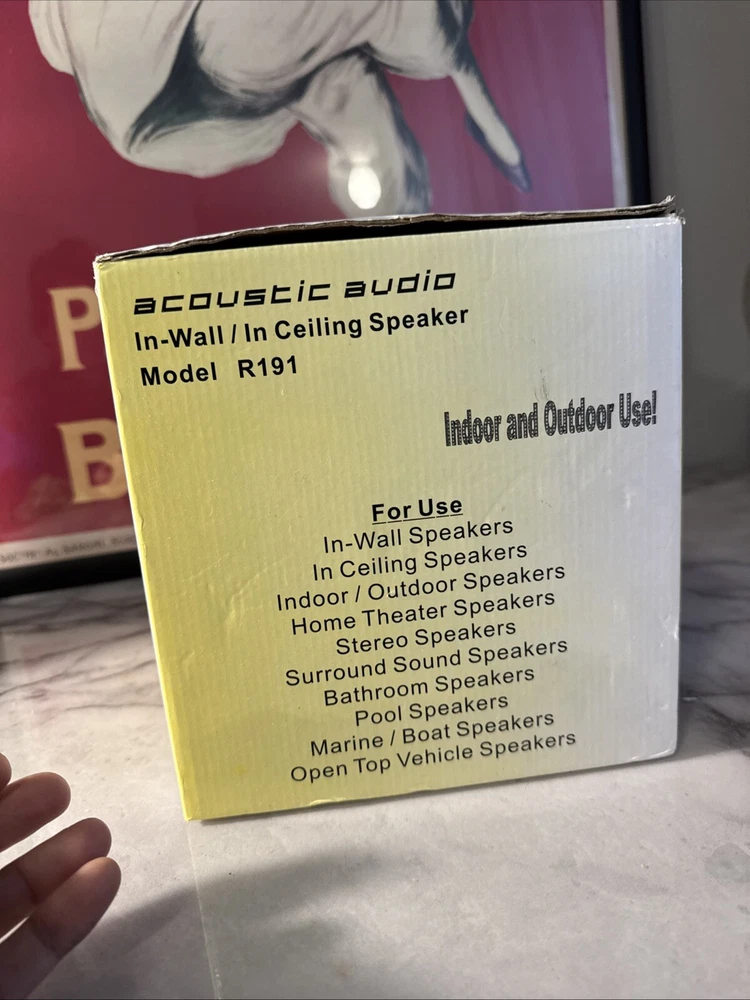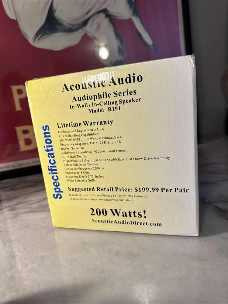Shape: Sphere MPN: R191 Impedance: 8 Ohms Brand: Acoustic Audio Number of speakers: 2 Type: In-Wall Speaker Color: White UPC: 0893044002136 Connectivity: Wired Driver Size: 5.25 in Model: r191 RMS Power: 200 W gtin13: 0893044002136