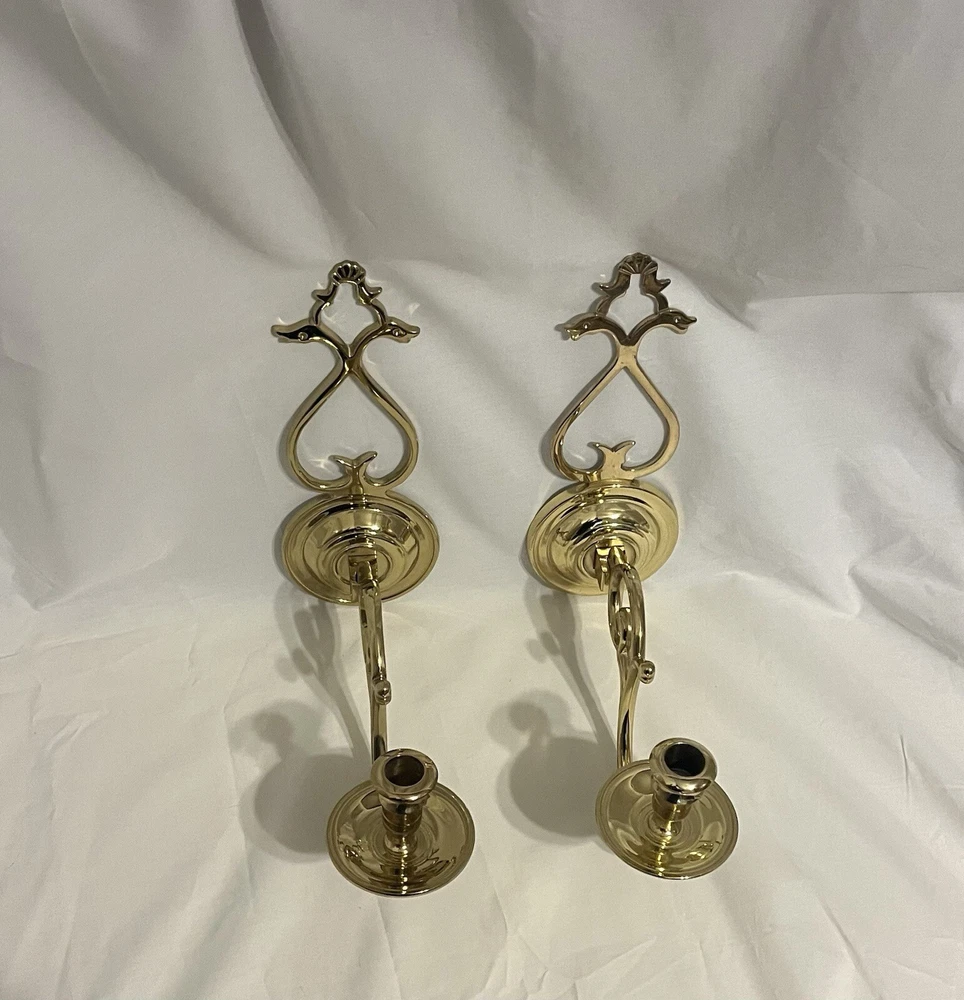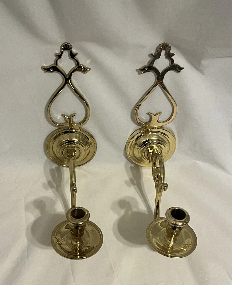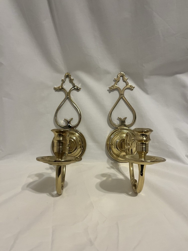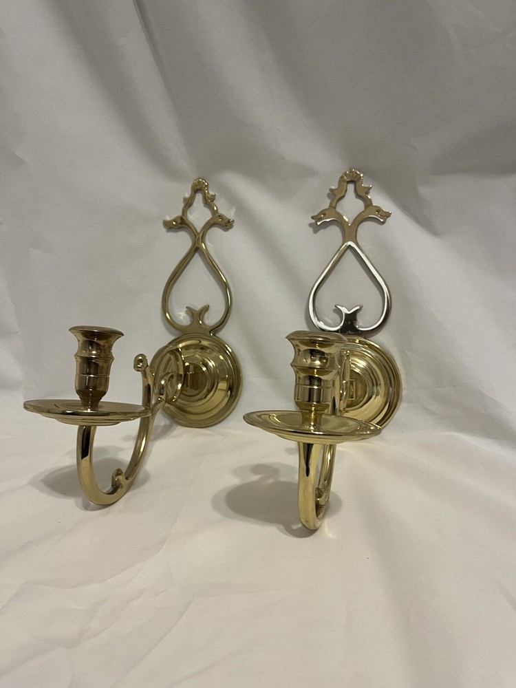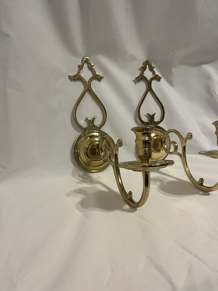 Style:Colonial TraditionalColor:GoldMaker:Colonial Williamsburg Virginia Metal CraftersSize:n/aFeatures:PairMaterial:BrassOriginal/Reproduction:Vintage OriginalType:Candle Wall SconceDecade:n/a