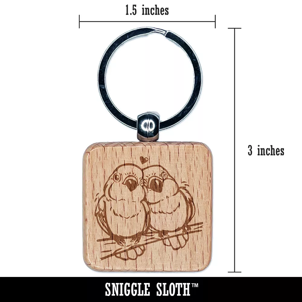 Pair of Lovebirds Anniversary Valentine's Day Engraved Wood Square Keychain