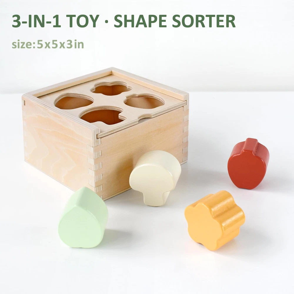 3 In 1 Montessori Toys Set - PairPear baby toys set contains shape sorting cubes with wooden blocks,stacking toys tree and matching toys puzzles,help little ones fine motor skills and hand-eye coordination while they are playing these classical wooden toys. Shape Sorter Toys - The shape matching games includes activity cube and four different color wooden block toys,Each shape is designed to fit through a matching hole on the wooden cube,great toddler activity toys to learn colors and shapes. Stacking Toys Tree - Made of high quality solid wood and safe paintings with smooth polished edges,easy-to-grasp wooden pieces are perfect for little hands to manipulate and explore. Building Block Puzzles - The wooden toddler puzzles set features five adorable animal patterns that babies love,Providing endless fun for young children starting to explore the world of building and constructions. Toy Gift for Toddlers - This 3 in 1 infant toys set contains in a cute and charming color box, attractive to babies, that would be the perfect gift for baby as Birthday gift, Easter gift, Christmas gift, Children's day gift and New Year gift.