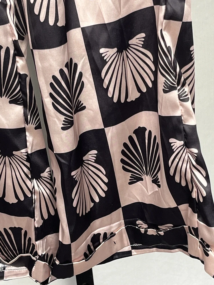 Pajama Pants Small Pink Black PJ Sleepwear Wide Leg Cuff Seashells Beach Shell Waist 23”, Inseam 29”, Hips 44”, Rise 10.5” to 1.5” waistband No brand or material tag only size tag