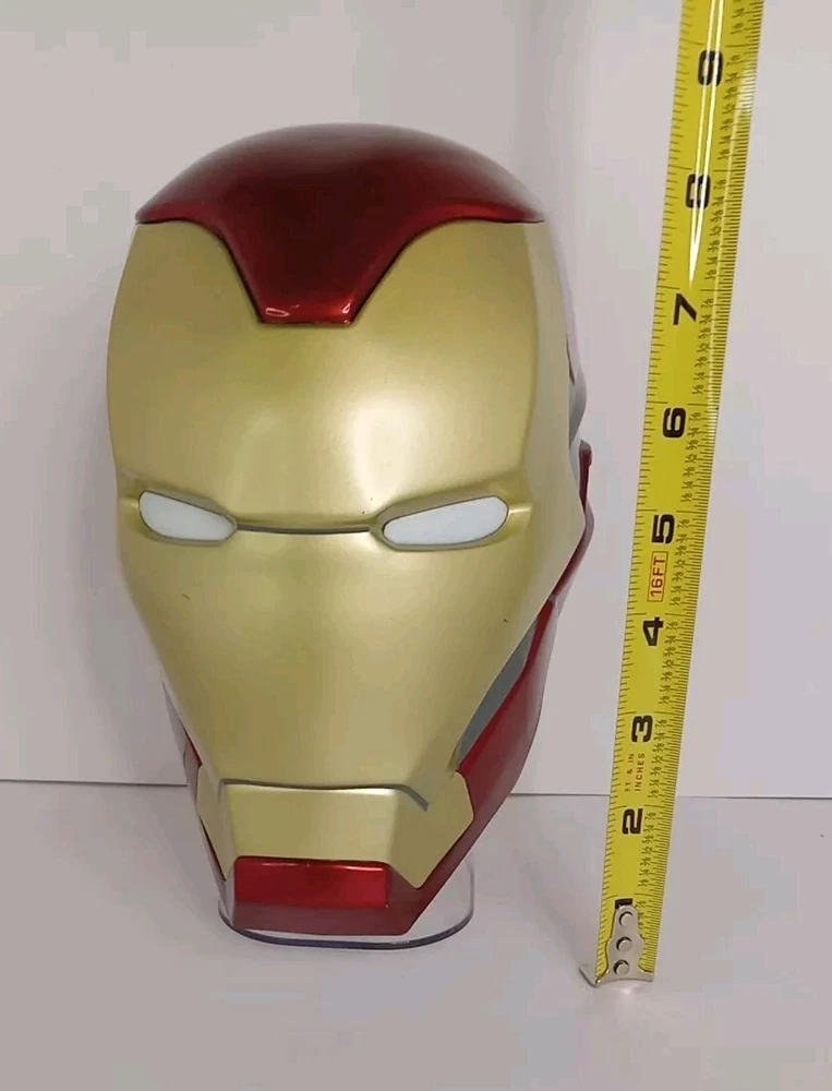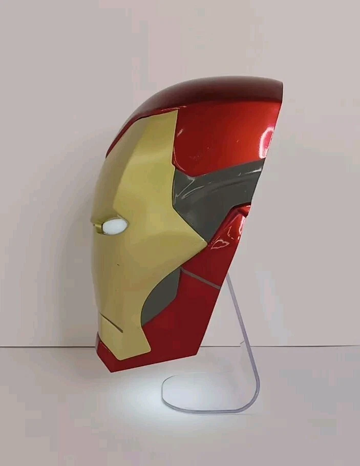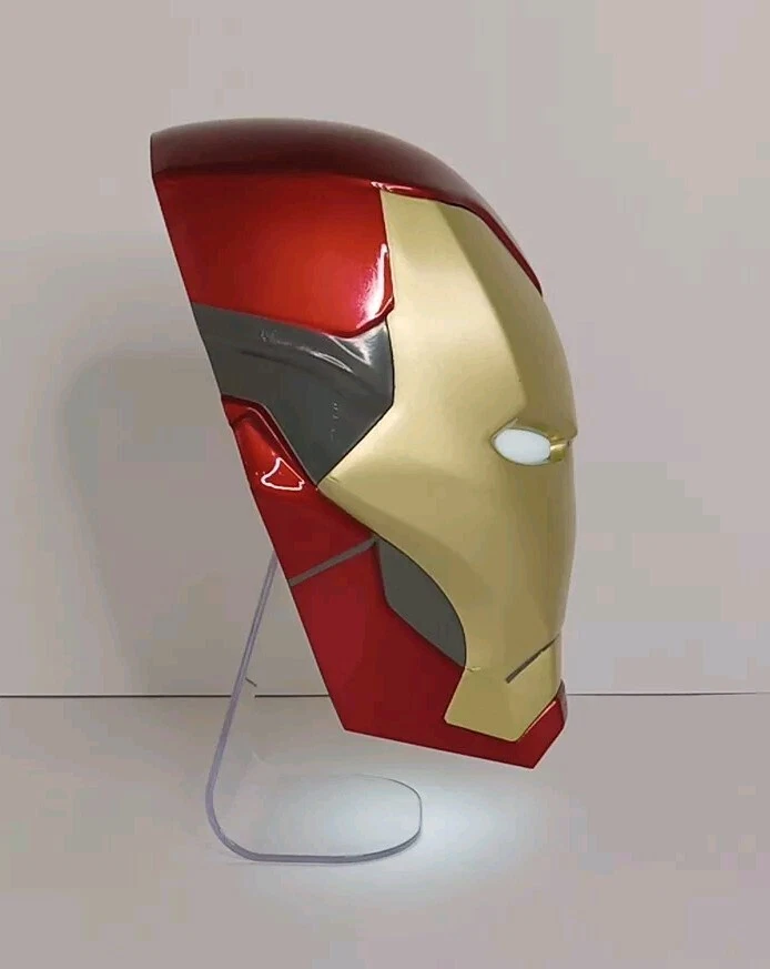 Used. Tested and working. Few scratches and minor wear as shown in pictures. As is. Experience the thrill of the movies with this officially licensed Iron Man helmet light. This reproduction piece is perfect for any fan of the Marvel universe, and adds a unique touch to any collection. The helmet features a sleek design and is made of high-quality materials, ensuring that it will last for years to come. Whether you're a collector or just looking for a cool piece of movie memorabilia, this Iron Man helmet light is sure to impress. It's the perfect addition to any home office, man cave, or gaming room. Bring a piece of the movies into your home with this amazing reproduction.