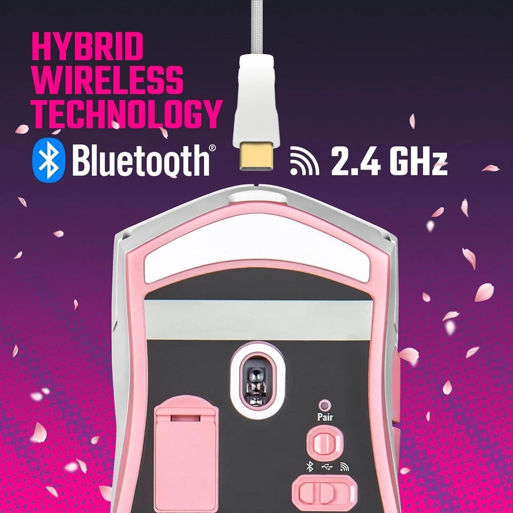 Product Description MM712 Sakura Wireless Gaming Mouse Pink|White, Adjustable 19,000 DPI, Palm|Claw Grip, 2.4GHz|Bluetooth, PixArt Optical Sensor, Ultraweave Cable, PTFE Feet, RGB Lighting (MM-712-WWOH2) Hybrid Wireless Tech: Choose from wired mode, 2.4GHz wireless, or Bluetooth 5.1 to connect multiple devices Seamless Lightweight Design: Honeycomb shell housing has been upgraded to a seamless chassis with ambidextrous shape that still keeps the total weight at 59g Gaming-Grade Hardware: Pro-grade sensor adjustable up to 19,000 DPI, and optical micro switches rated for 70 million clicks and near-instantaneous input time Ultraweave Cable: Super lightweight and engineered in-house to prevent cable snag when swiping and unnecessary cable drag when in battle Pure PTFE Mouse Feet for Superior Glide: New-and-improved feet made with PTFE material for low friction and high durability provides a smooth, fast glide without cable pull About Us We are a reputable seller with many years of experience selling on eBay. Our goal is to provide high-quality products and excellent customer service. Shipping Items will be shipped within 1-3 business days when we received payment. (Orders are not processed on weekends & holidays) Tracking information will be sent once item is shipped. Delivery time depends on destination and other factors Item is shipped to ebay address. Leaving correct address can minimize delay. For international shipping and shipping to Guam, Hawaii and Alaska, Please contact us before placing the order. International buyers please note: Import duties, taxes and charges are not included in the item price or shipping charges. These charges are buyer’s responsibility. We will try our best to reduce the risk of the custom duties. Local pick-up is unavailable at the moment. Contact Us We reply any email messages within 1 business / working days(off-duty at weekend). If you do not get a response from us, then please check your junk or spam mailbox. Our Business hours: Mon-Fri 9:00-18:00, UTC/GMT +8 hours. Please contact us either by clicking "contact seller" in the "purchase history" section or simply click "ask a question" at the bottom of this page. If you are unsatisfied with our item or service, please contact us before leaving any feedback. We are committed to resolve all issues in a friendly and satisfactory manner.