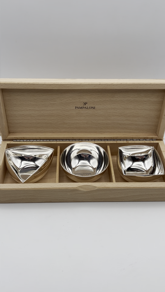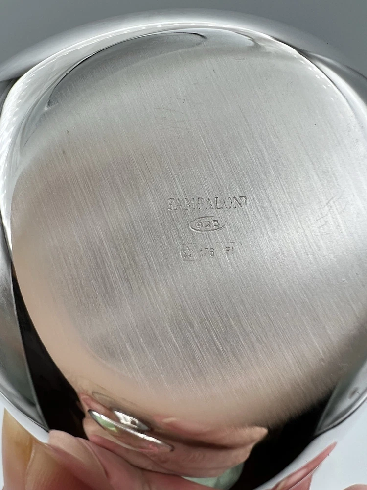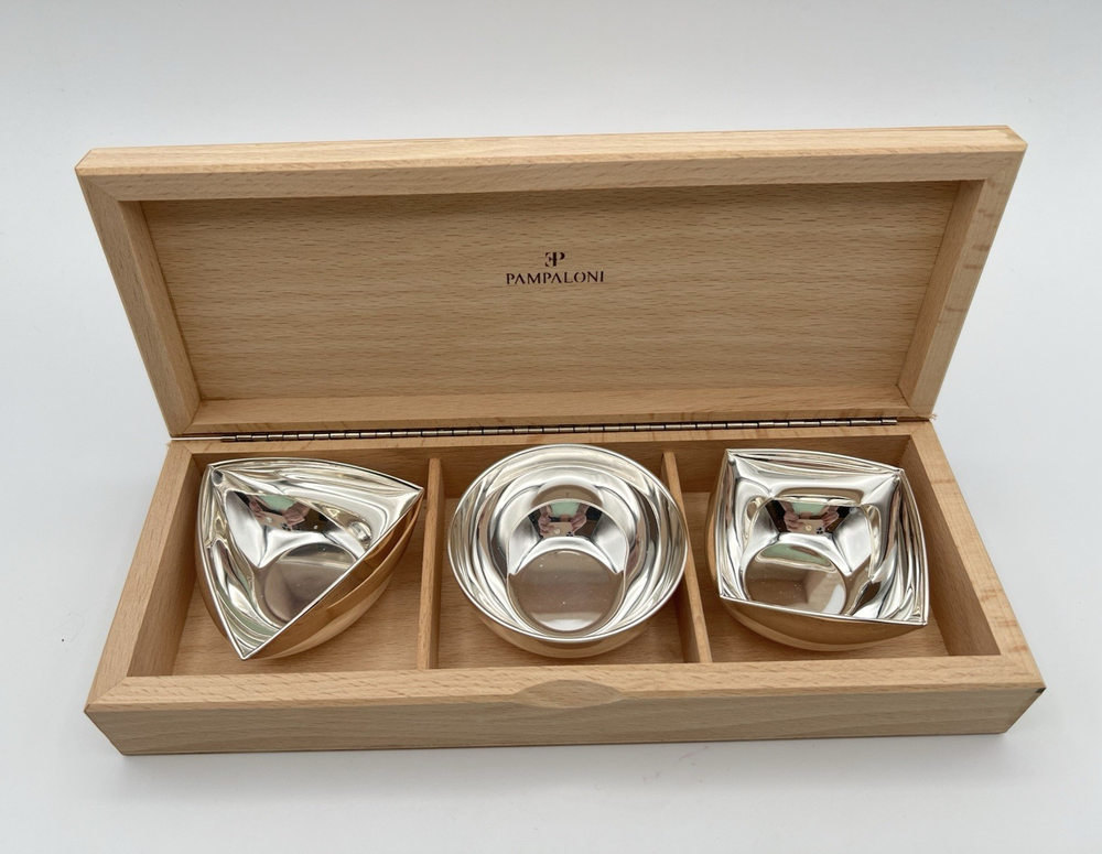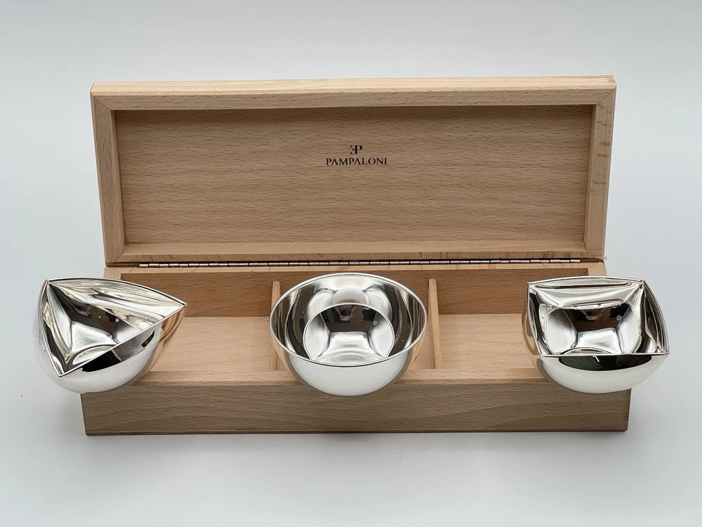 Pampaloni Italian 925 Sterling Silve r Seder Cups - Set of 3 (Firenze/Forence, Italy) Brand New and Complete with all original Pampaloni packaging - box, card insert, tissue, and ribbon. Only taken out of packaging once for photos - then immediately re-packaged with care. Religious & Ritual Type: Ceremonial Period - Specific: Mid-Century Modern Style Decorative Style: Modern Style Region: Europe Country: Italy City: Firenze (Florence) Century: 20th Color: Silver Materials: Sterling Silver (.925) Dimensions: Height: 1.75 inches / 4.45 cm Width: 2.75 inches / 6.99 cm Add pure elegance to your table for your next special occasion. Many use these beautiful Seder cups to celebrate Passover. Others simply as gorgeous display pieces. And many others find them perfect to entertain using as bowls for serving fruits, nuts, or candy. - This item will be shipped with signature confirmation. As sellers, we are happy to cover this cost. Please see all photos and video. We do not use stock photos - what you see is the exact item you will receive! (We work very hard to have maintained our 100% positive rating for 25 years as sellers on eBay. Thanks to all of the amazing buyers out there for the great feedback and continued support.)