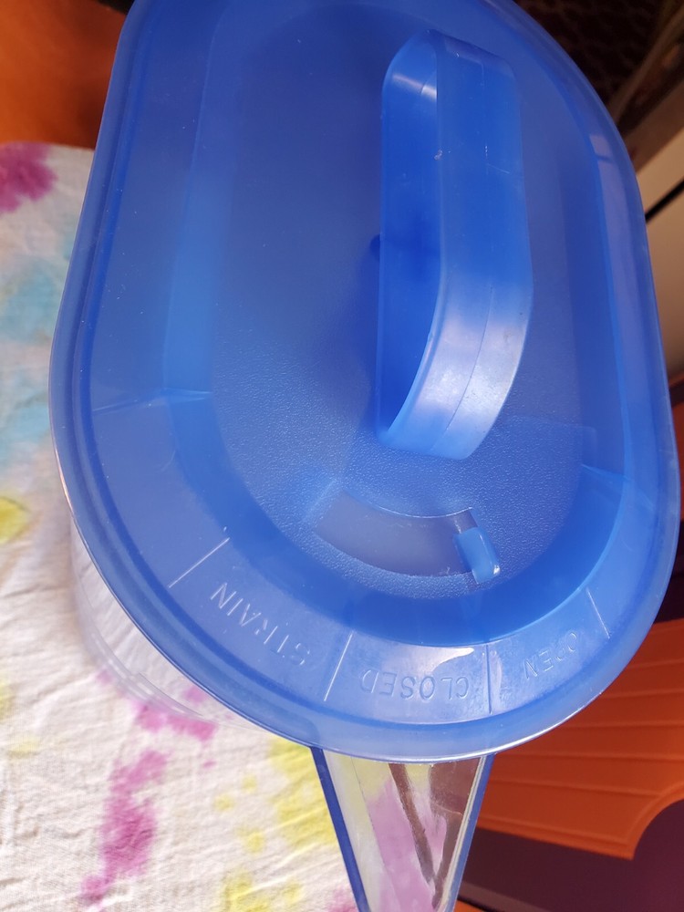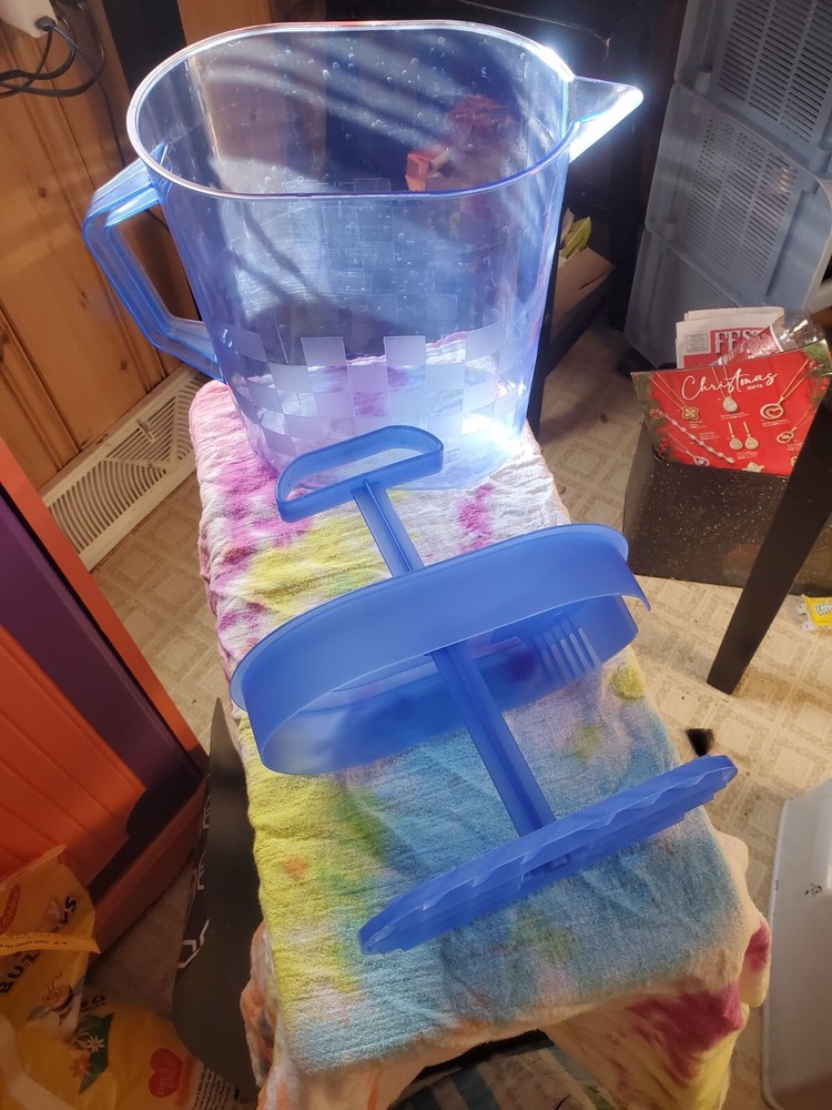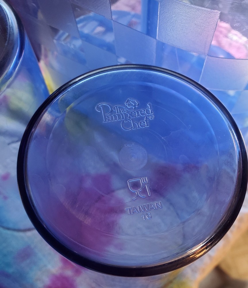 Pampered Chef Pitcher+Tumblers. Blue checkered pattern. Good condition
