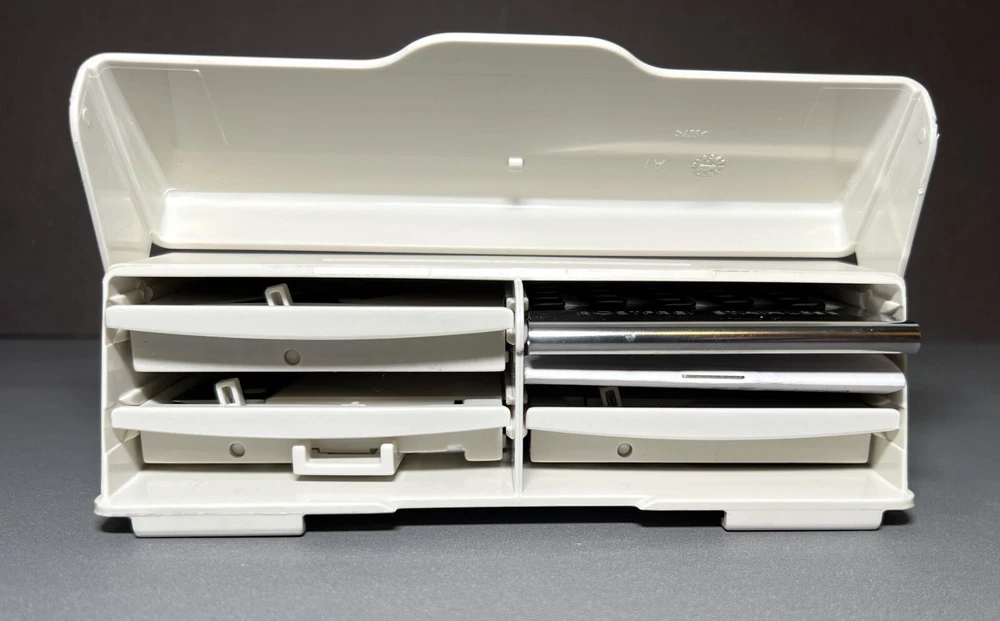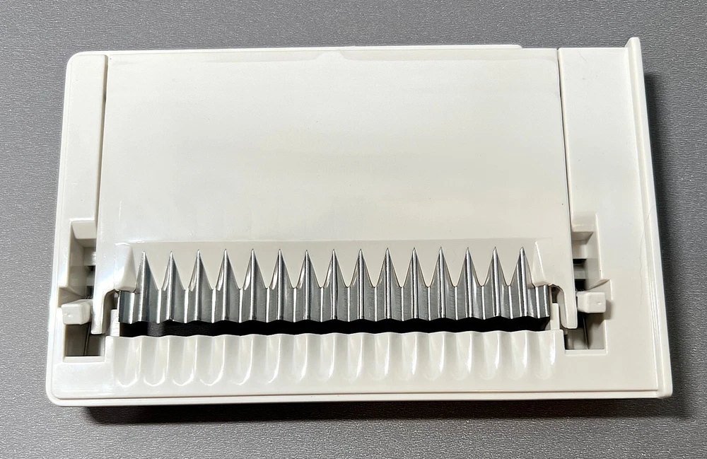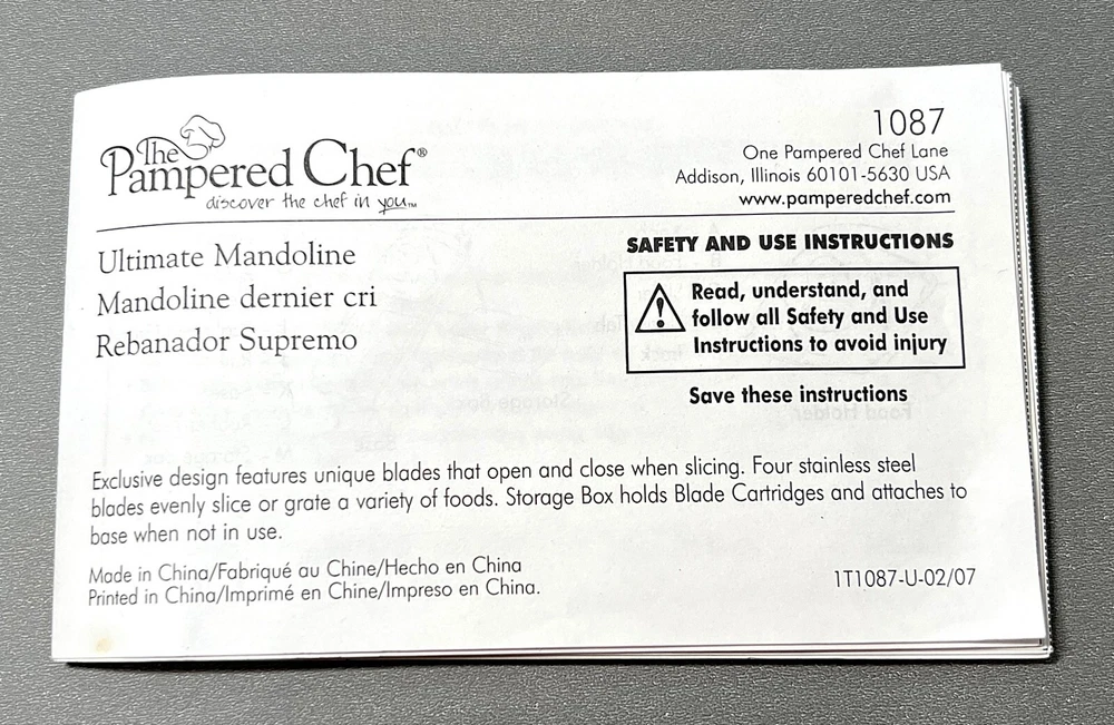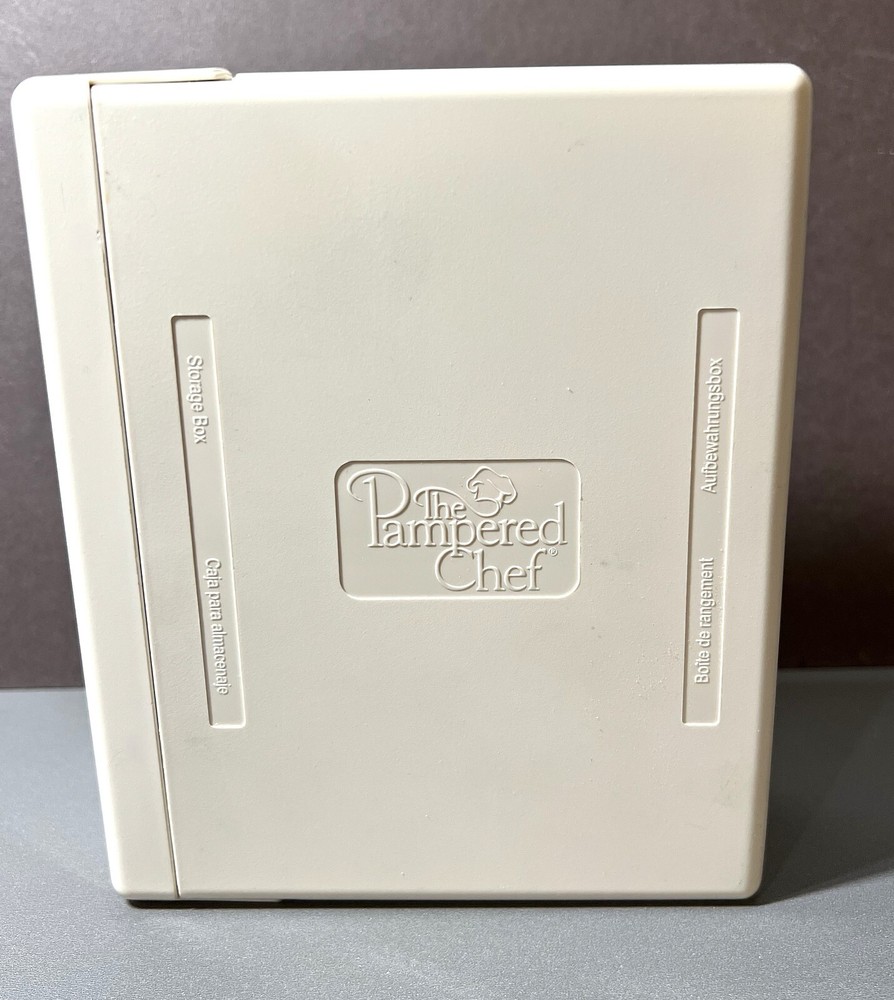 Experience the convenience of precision slicing with The Pampered Chef Ultimate Mandolin Slicer replacement blades. This versatile kitchen tool is now RETIRED from Pampered Chef and came with a variety of interchangeable blades/discs, allowing you to grate cheese and slice an array of foods with ease. These replacement blades are new, open box and help you ensure a uniform thickness for consistent results, whether you're preparing thin cucumber slices for a salad or thick cuts for gratins. Crafted with a combination of durable stainless steel and sturdy plastic, these slicer blades are designed for longevity and ease of use. The beige color offers a classic look that complements any kitchen decor. Included are 4 replacement blades, a storage box, and instructions, ensuring you have new, sharp blades for efficient food prep.