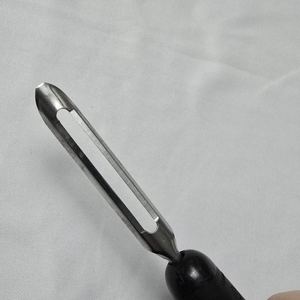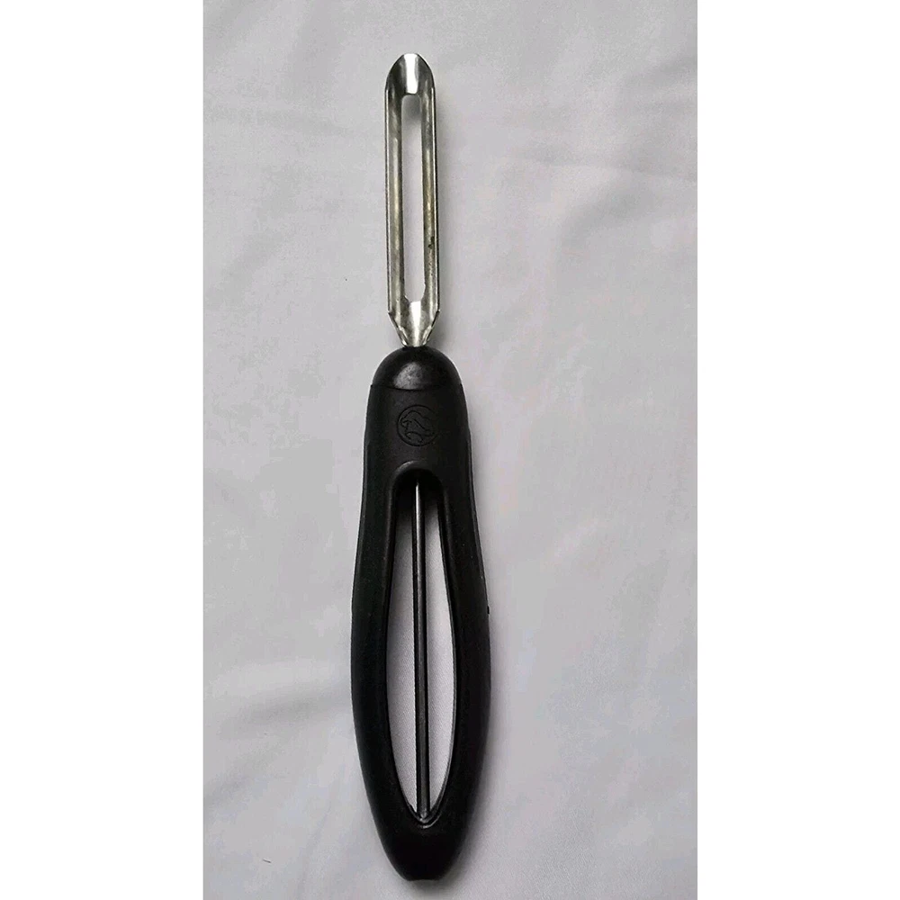 The Pampered Chef Vegetable Potato Peeler #1071 features a swivel blade with a comfort grip handle, making it easy and comfortable to use. Made of stainless steel and dishwasher safe, this vegetable peeler is perfect for peeling vegetables like potatoes. The set includes both a vegetable peeler and a potato peeler, providing versatility in the kitchen. This black peeler is a practical and convenient tool for any home cook looking to easily prep their vegetables.