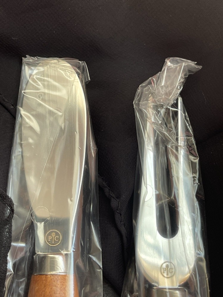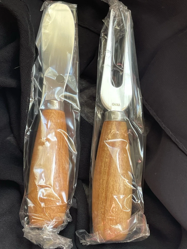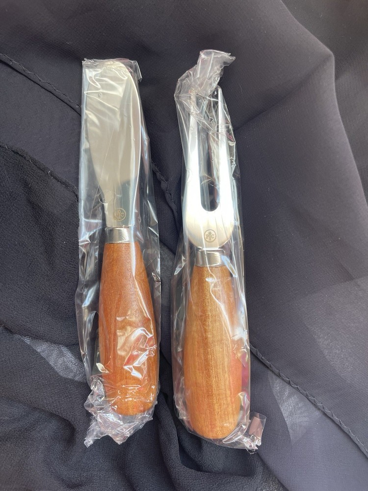 Pampered chef fork and spreader set wood handle New Sealed Original Box Set. Condition is New. Shipped with USPS Ground Advantage.