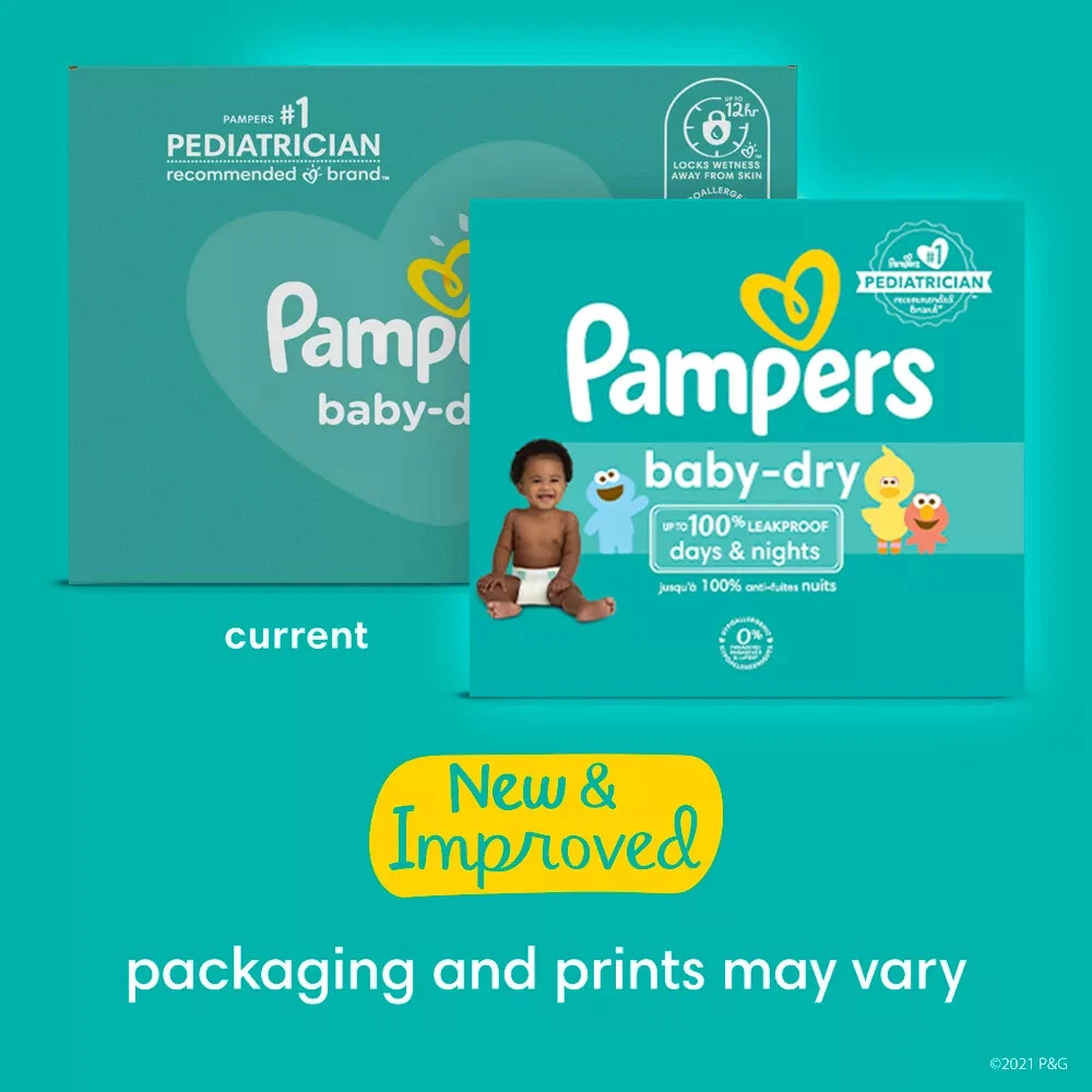 Highlights Up to 100% leakproof nights and happy mornings with LockAway Channels Helps prevent blowouts with stretchy sides and large tape fasteners for a secure and comfortable fit Helps keep skin dry and healthy with Dri-Weave Liner Trusted protection-from Pampers #1 pediatrician recommended brand Gentle on baby's delicate skin-hypoallergenic and free of parabens and latex* (*Natural Rubber) New and improved! Packaging and prints may vary Use with Pampers Baby Fresh Wipes for healthy skin Health Facts: Paraben-Free, Contains Aloe Features: Wetness Indicator, Hypoallergenic, Elastic Stretch Sides Disposability: Do not flush Safety and Security Features: Latex-Free Package Quantity: 168 Diaper Weight Range: 16 to 28 lbs Material: Polyester, Spandex If you have some inquires or problems, Please feel free to contact us. We will reply your email within 1 business day (except weekend). When delivery is delayed or items are damaged during delivery, please email us first before you leave feedback. Thank you.