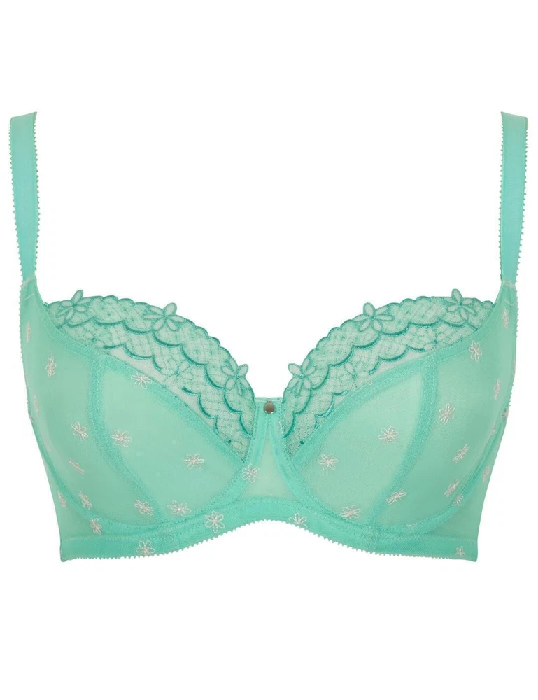Lingerie Swimwear Sportswear Seductive Panache Blossom Underwired Balcony Bra 10581 Jade Lingerie FREE UK Delivery International Delivery Available The Blossom range gives a reliable fit you know you can trust! Based on the old favourite; Marcie bra, this Balcony style in the summery Jade shade is perfect to add a pop of colour to your lingerie collection. Feel flirty and feminine with delicate daisy embroidery on this mint green set. Key Features UK Sizing Shown, 10581, Hand wash and dry only Balconette bra, Non padded, Underwired cups, Fully adjustable straps, Back fastening with 2 hooks over 3 columns, 3 hooks over 3 columns for larger cup sizes, RRP: 32.00 About us At Brashopper we carefully select lingerie and swimwear from leading manufacturers such as Freya, Fantasie, Elomi, Fauve, Panache, Cleo, Wonderbra, Shock Absorber. All of our lingerie is brand new direct from the manufacturer. We offer a wide range of sizes from AA to K cups and 28 to 48 back sizes. We understand that it is still an ongoing quest for most women to find the right fitting bra in attractive styles and at affordable prices. At Brashopper we pride ourselves not only on the wide variety of choice within our online boutique, but also on the level of customer service we offer. We have a passionate team who are always on hand to help you get the perfect fit. With over 12 years experience our mission remains the same to make sure every customer looks fabulous and feels fabulous in their purchase from us Delivery We aim to despatch all items as soon as possible (but in any event 30 days of the order) subject to payment clearance & stock availability. We will arrange delivery of the goods ordered by you to the address you give us for delivery at the time you make your order. Returns Bra Shopper offers you a 100% guarantee that if you are not completely satisfied with your goods, we will refund you minus the initial postage costs. Please note the item must be returned in its original condition & packaging, unworn and unwashed with all labels intact. Goods must be returned within 30 days of receipt. The item is your responsibility until it reaches us, we therefore advise that you request proof of postage. © Copyright Bra Shopper