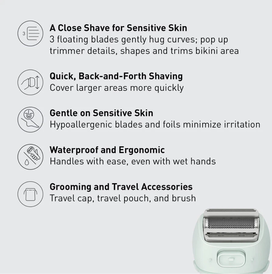 Panasonic Close Curves Electric Razor for Women, Cordless 3-Blade Shaver - Green. Used: tested still in good condition. Item: D24