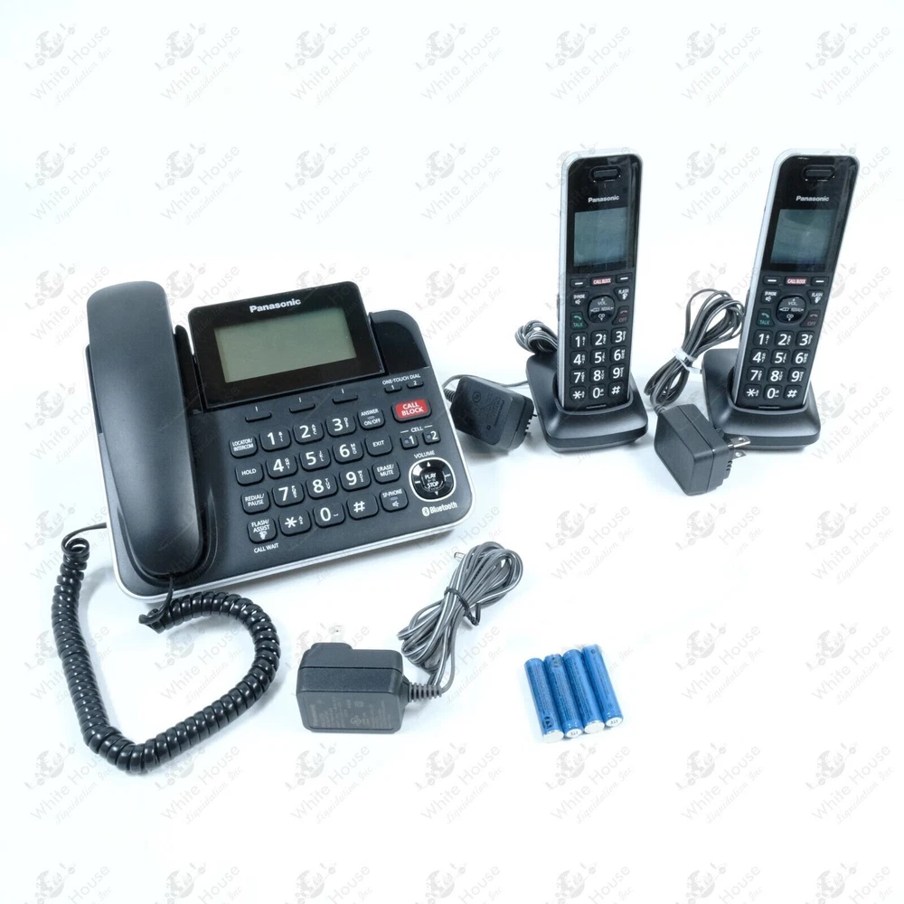Condition: Has scratches. Looks good. Works great! Description: Panasonic - KX-TGF882B Cordless Phone - Black What's included: Panasonic KX-TGF882B 2 additional handsets, 4 batteries Only the items shown in pictures will be included. What's not included: Documentation, Phone line cable Belt clip and all other accessories. Original box and packaging: Yes Key Specs Speakerphone Yes Bluetooth Enabled Yes Expandable Yes Frequency DECT 6.0 Digital Paging Locator Yes Answering System Included Yes General Product Name KX-TGF882B Link2Cell DECT 6.0 Expandable Corded/Cordless Phone with Digital Answering System and Smart Call Blocker Brand Panasonic Model Number KX-TGF882B Color Black Color Category Black Features Backlit Keypad Yes Volume Control Yes Intercom Yes Display Type LCD Number of One Touch Dial Buttons 3 Call Waiting Yes Caller ID Yes Number Of Incoming Lines 1 Call Functions Flash Function No Hold Button Yes Included Handsets Included Yes Number Of Expansion Base Stations Included 1 Number Of Expansion Handsets Included 2 Compatibility Hearing Aid Compatible Yes Number Of Expansion Handsets Supported 6