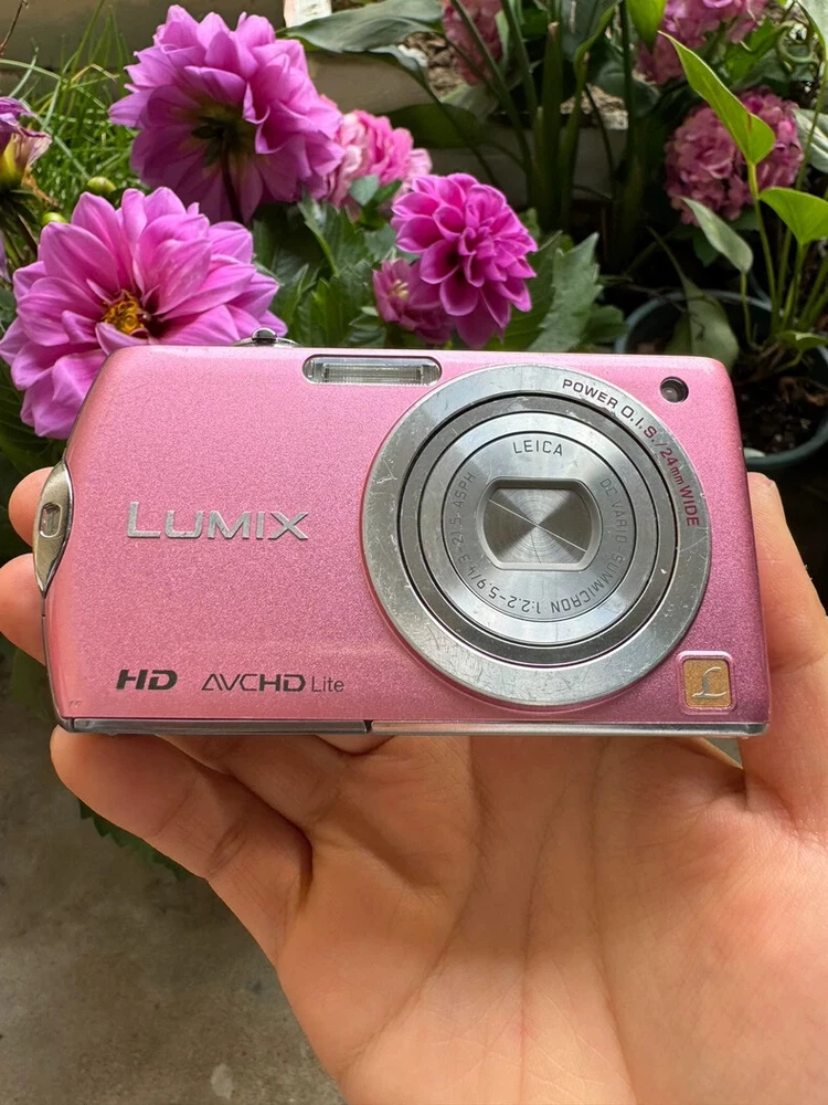 Panasonic Lumix DMC-FX70 Pink Compact Digital Camera Japanese 90%new Product Description: The Lumix DMC-FX75/FX70 is a 14 megapixel touch-screen compact camera with 5x zoom lens. The 24-120mm image stabilized, Leica-branded lens offers a maximum aperture of F2.2 at the wide-angle end but only F5.9 at the long end. It also features AVCHD Lite 720p video with the ability to split video clips in the camera. specification: Body type Compact Max resolution 4320 x 3240 Effective pixels 14 megapixels Sensor size 1/2.33" (6.08 x 4.56 mm) Sensor type CCD ISO Auto, Hi Auto (1600-6400), 80, 100, 200, 400, 800, 1600 Focal length (equiv.) 24–120 mm Max aperture F2.2–5.9 Articulated LCD Fixed Screen size 2.7″ Screen dots 230,000 Max shutter speed 1/2000 sec Format AVCHD Lite, Motion JPEG Storage types SD/SDHC/SDXC, Internal USB USB 2.0 (480 Mbit/sec) Weight (inc. batteries) 165 g (0.36 lb / 5.82 oz) Dimensions 103 x 55 x 23 mm (4.06 x 2.17 x 0.91″) Package included: 1 x Camera 1 x Battery 1 x SD card 1 x Charger On Jan 7, 2025 at 03:26:40 PST, seller added the following information:
