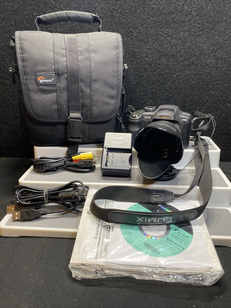 Capture life's precious moments with this Panasonic Lumix DMC-FZ35 digital camera. With a maximum resolution of 12.1 MP and an 18x optical zoom, this bridge-type camera in black color is perfect for photography enthusiasts. It features red-eye reduction, built-in speaker, CMOS sensor, built-in flash, HD video, auto focus, tripod thread, viewfinder, and auto power save. This camera is ideal for those who are into photography and videography. It is a reliable and high-quality device that allows you to capture stunning images and videos. Whether you're a beginner or a professional, the Panasonic Lumix DMC-FZ35 is a great choice for anyone who wants to take their photography skills to the next level. Condition: Item is pre-owned. Tested &Working. Show signs of scuffs/wear/scratches from previous usage. Does not come with retail packaging, You get exactly what you see in pictures. Please see pictures for more details