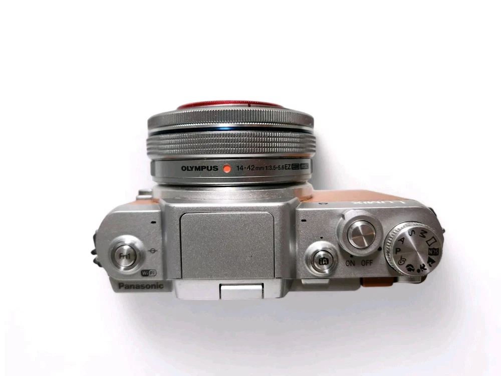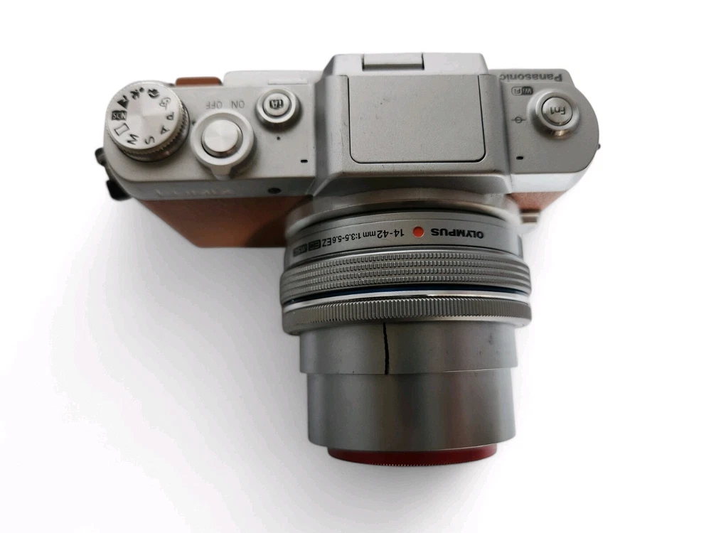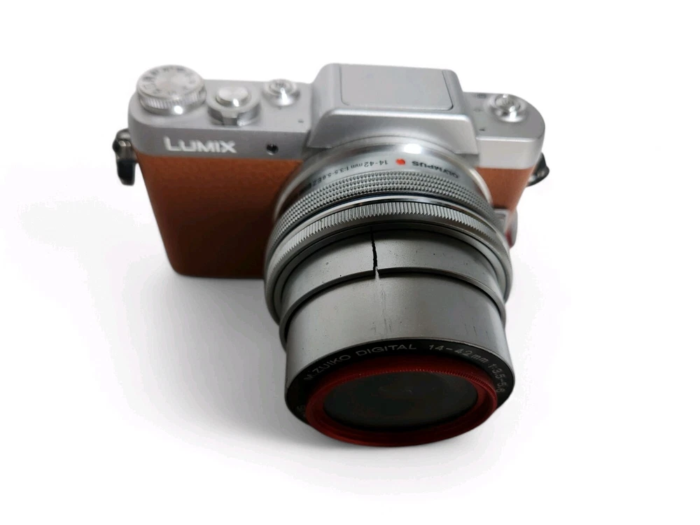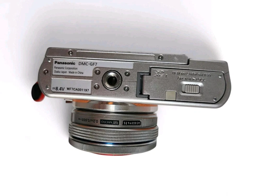 Panasonic Lumix DMC-GF7 with 14-42mm Olympus M.Zuiko Lens In good working condition. The 14-42mm Olympus M.Zuiko lens has a small crack please see the pictures but functions properly. Body In Good condition delivering sharp and vibrant images. Fully tested and operational No Charger or sd card included If you have any questions please contact me