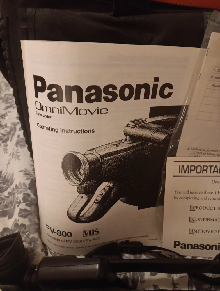 The Panasonic Omnimovie Pv800camcorder is a handheld camcorder from the Sony Handycam series, known for its standard definition recording capabilities. This unit comes in a sleek black color and offers connectivity through components. The camcorder includes a charger, tripod, and 13 new tapes for convenient use. With the brand's reputation for quality and reliability, the Panasonic Omnimovie Pv800camcorder is a great choice for capturing memories in VHS format.