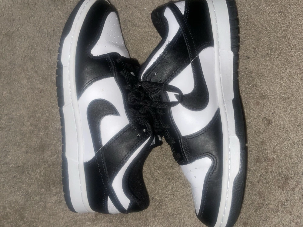 Introducing the Panda Dunks, a stylish and comfortable sneaker perfect for casual wear. Made with high-quality leather and designed with a sleek black color, these shoes are sure to match any outfit. Whether you're a fan of Nike or just looking for a trendy addition to your shoe collection, the Panda Dunks are a great choice. With a US shoe size of 7.5, these sneakers are perfect for men who value both style and comfort. The casual design makes them ideal for everyday wear, while the unique features, such as the brand and style, add a touch of personality to any outfit. Don't miss out on the chance to own a pair of Panda Dunks - step up your shoe game today!