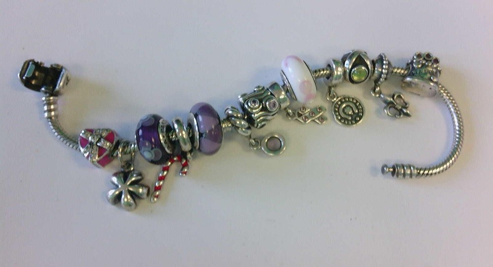 You are viewing a Nice Pandora 7.5" Bracelet w/ 13 925 Charms- CHECK IT OUT. BUY NOW!! Read below for further details... UNFORTUNATLY, WE DO NOT SELL TO THOSE WITH UNDER 500 EBAY FEEDBACK. IF YOU DO HAVE 500 OR UNDER FEEDBACK AND YOU ARE INTERESTED IN THE ITEM PLEASE CONTACT US FIRST BEFORE PURCHASING OR MAKING AN OFFER. FAILURE TO DO SO WILL RESULT IN A CANCELLED TRANSACTION. WE APPRECIATE YOUR UNDERSTANDING. THANK YOU. THESE ARE ALL THE PICS AND INFO WE CAN PROVIDE. BRACELET SHOWS WELL. NO ORIGINAL BOX OR BAG. WE WILL NOT SEPARATE THE CHARMS FROM THE BRACELET. SOLD AS IS. THIS BRACELET HAS 13 CHARMS. Seller's Notes: I have sold and current listing some wonderful items to the great people of eBay. This is the exact item you will receive. Overall in good- very good pre owned shape- Minimal pre-owned wear. Clasp has no issues. I do not have time to itemize each charm- please view pics to determine variety, style, etc. Was lightly cleaned. See high def pics to determine condition, style, etc. PLEASE CHECK OUT MY OTHER AUCTIONS. THANK YOU!! Particulars: Total weight- 51.6 grams Length- 7.5" Bracelet will be in the bag you see in the pic. NO ORIGINAL BOX OR BAG. WILL NOT SEPARATE ANY CHARMS FROM BRACELET!! Foreign bidders- total shipping weight will be 4 ounces. Bidding and Shipping: I will ship to 48 states. USPS Priority with tracking and insurance, (signature upon request). Buyer will pay a flat fee of $5.99. Alaska, and Hawaii will pay a shipping rate based on eBay. Overseas shipping using eBay Global Shipping- YES PLEASE NOTE: I WILL NOT SHIP THIS PERSONALLY- MEANING I WILL USE EBAY GLOBAL SHIP TO SHIP THIS ITEM THEREFORE OVERSEAS BIDDERS YOU WILL HAVE IMPORT CHARGES. I DO NOT KNOW OR AM I RESPONSIBLE FOR THOSE CHARGES. PLEASE CONSIDER THIS BEFORE YOU MAKE YOUR BID. THANK YOU. I WILL ALSO OFFER A 2ND OPTION - FOR THOSE WHO DO NOT WANT GLOBAL SHIP. IT MUST BE A RECOGNIZED COUNTRY THAT WILL ALLOW ME TO SHIP THRU EBAY. I WILL NOT CALL THIS ITEM A GIFT WHEN SHIPPING OVERSEAS. Please pay within 2 days after the auction is complete. I usually ship 1-2 days after receiving clear payment. Sometimes sooner depending on time constraints. Item sold "as is" We have the right to end this auction at anytime. I do not ship on Saturdays Great feedback is always appreciated!!! This is a "BUY NOW" auction. Priced to sell!!! Will combine shipping- Just let me know. Thank you!! ____________________________________________________________________________ Pandora bracelet w/ charms ready to be added to your collection. If you have any questions please feel free to contact me at anytime. I usually respond within 24 hours sometimes sooner. Thank you and happy bidding!! PLEASE TAKE A MOMENT AND CHECK OUT MY OTHER AUCTIONS!!