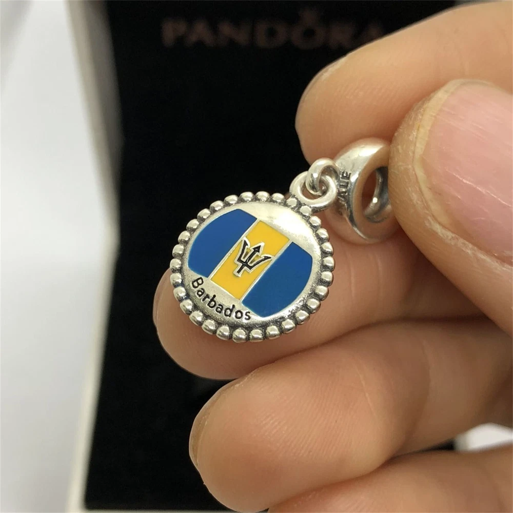 Pandora Barbados Flag Charm Travel Pendant S925 Silver with box
