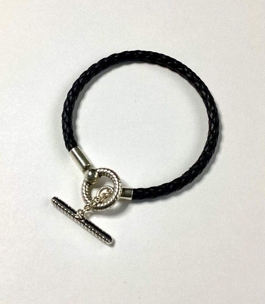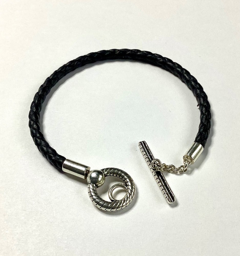 Pandora Black Leather Rope T Bar Bracelet Pre-loved in Excellent Used Condition Length 16.5 cms Please see my other items which you may also be interested in