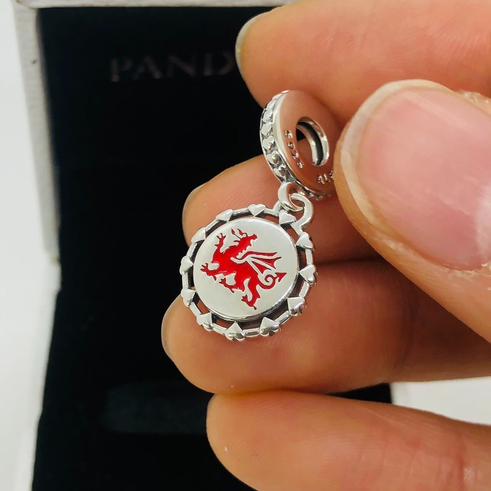 Pandora Engravable Welsh Red Dragon Sterling Silver Dangle Charm S925
