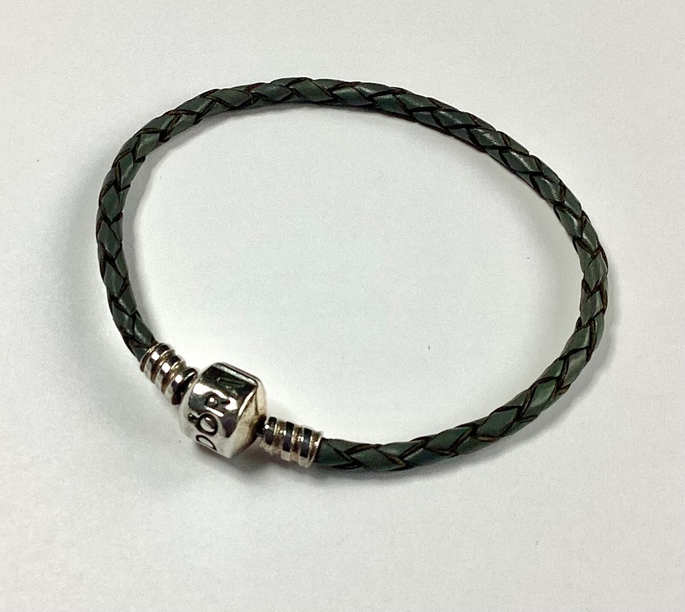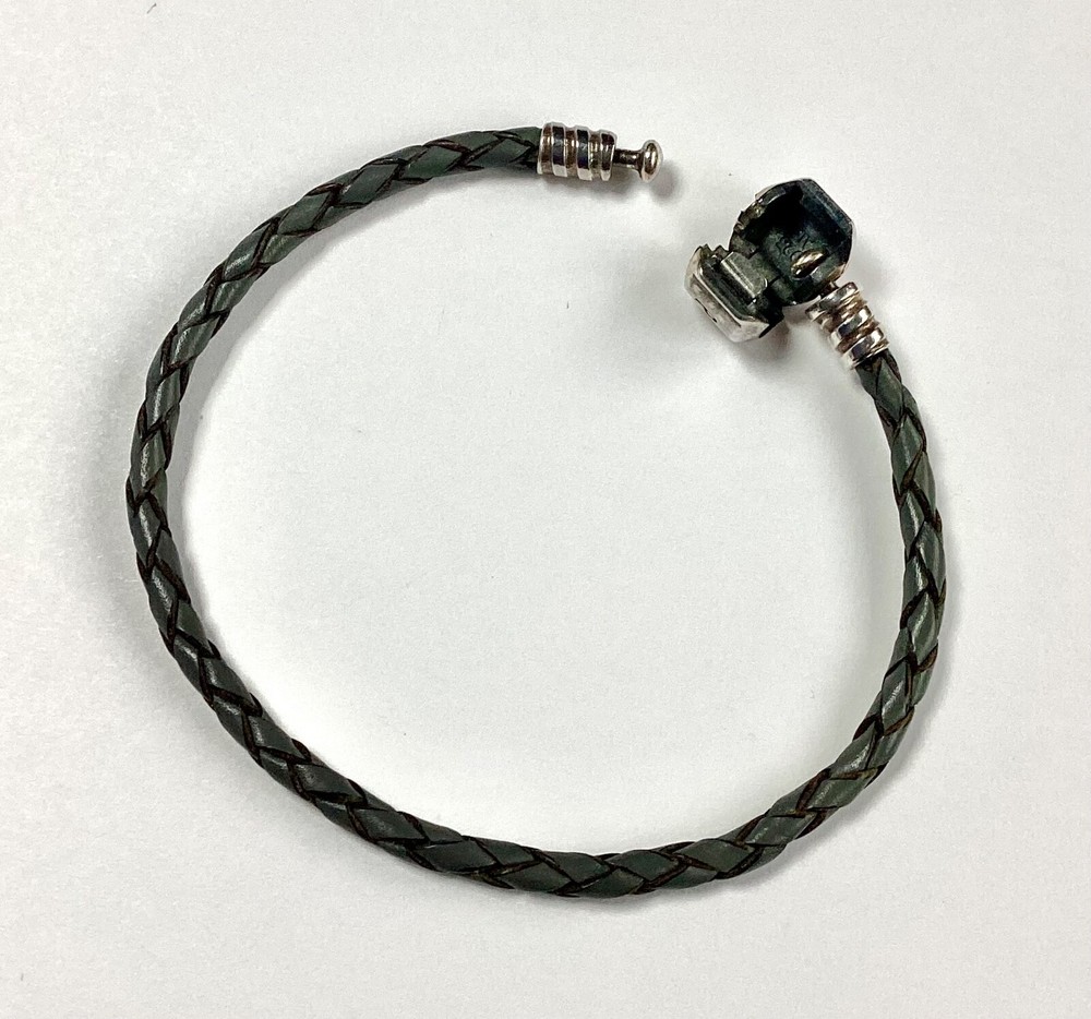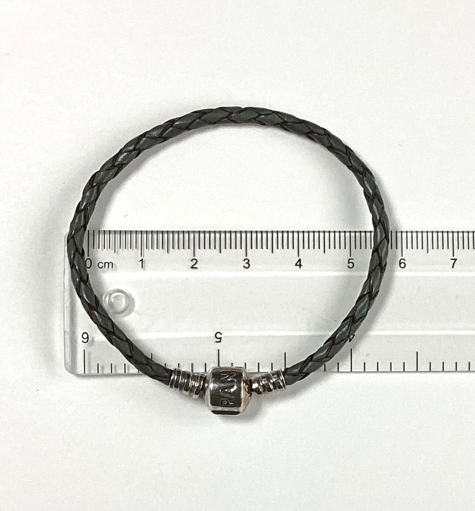 Pandora Grey Leather Single Rope Charm Bracelet 17.5 cms Pre-loved in Excellent Used Condition Please see my other items which you may also be interested in