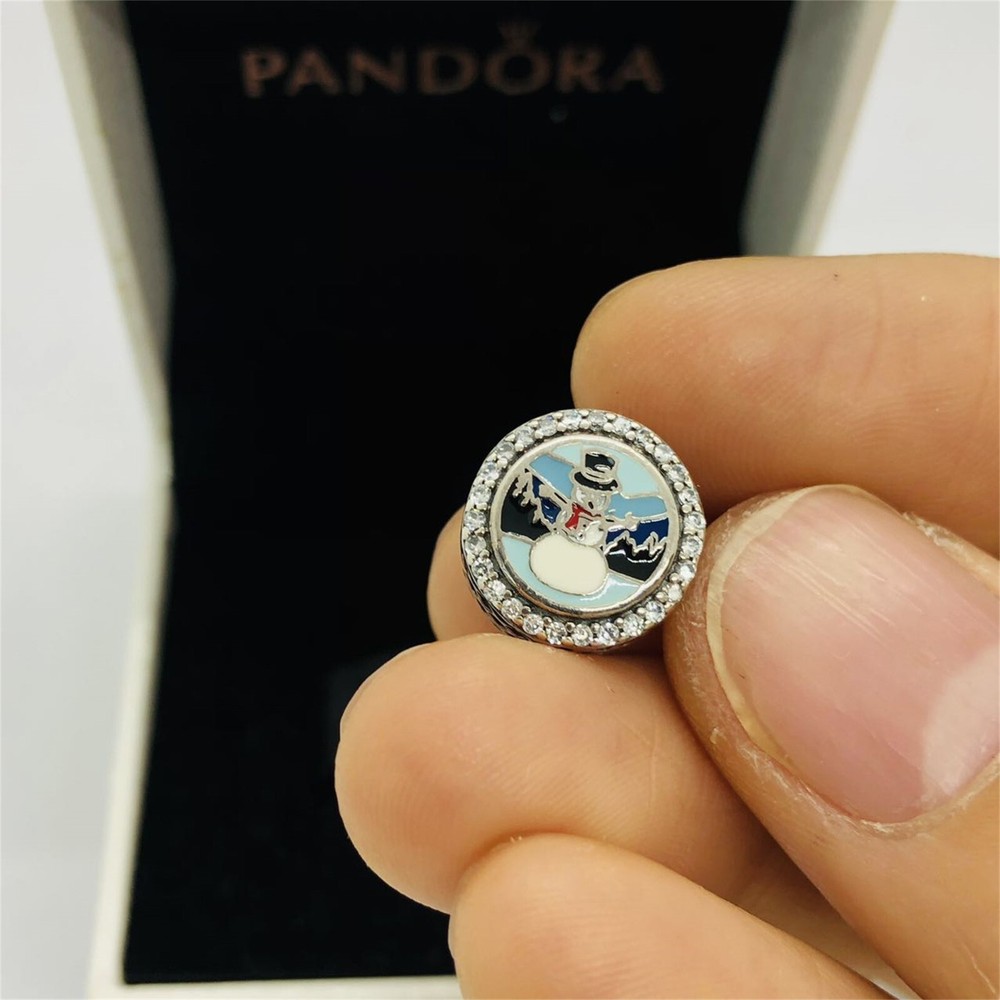 Pandora Smoky Mountains Snowman Charm in S925 Silver with Box