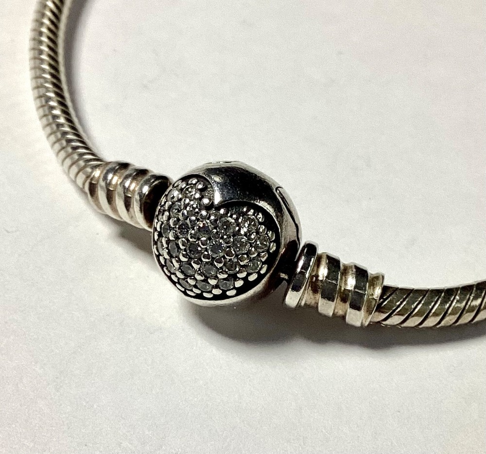 Pandora Moments Sparkling Heart Clasp Silver Bangle Length 19cms s925 ALE Excellent Condition No box but will be carefully packed when shipped Please see my other items which you may also be interested in