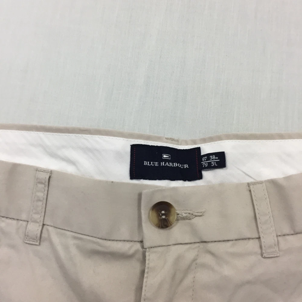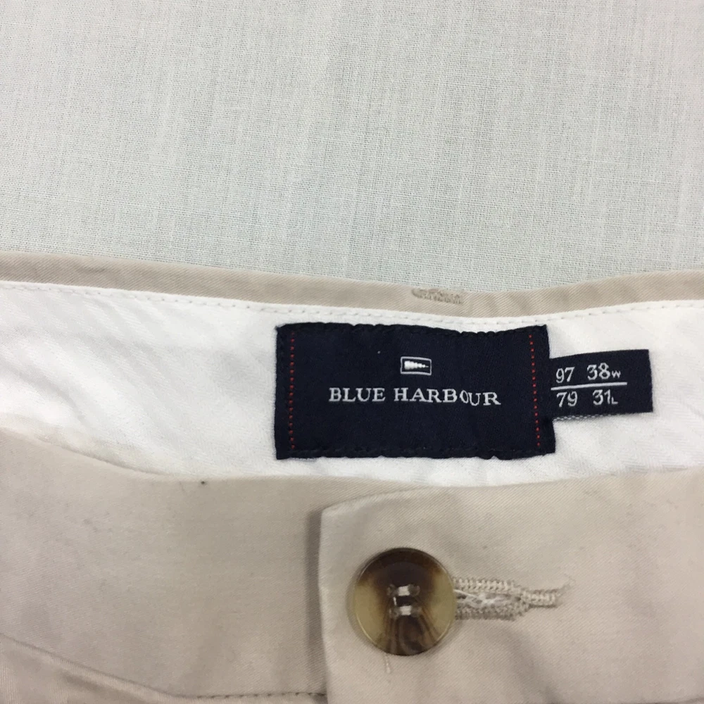Handmade: No Closure: Button Accents: Button Vintage: No Brand: Blue Harbour Pocket Type: Coin Pocket Estado del artículo: Usado Inside Leg: 31 in Fabric Type: Canvas Colour: Beige Leg Style: Straight Season: Autumn, Spring, Summer, Winter Pattern: No Pattern Size Type: Regular Garment Care: Machine Washable Personalise: No Country/Region of Manufacture: Unknown Notas del vendedor: “Good used condition, check below for full description & photos.” Material: Cotton Blend Rise: Mid (10-12 in) Waist Size: 38 in Style: Chino Size: 38 Fit: Regular Type: Trousers Occasion: Business, Casual, Travel Department: Men