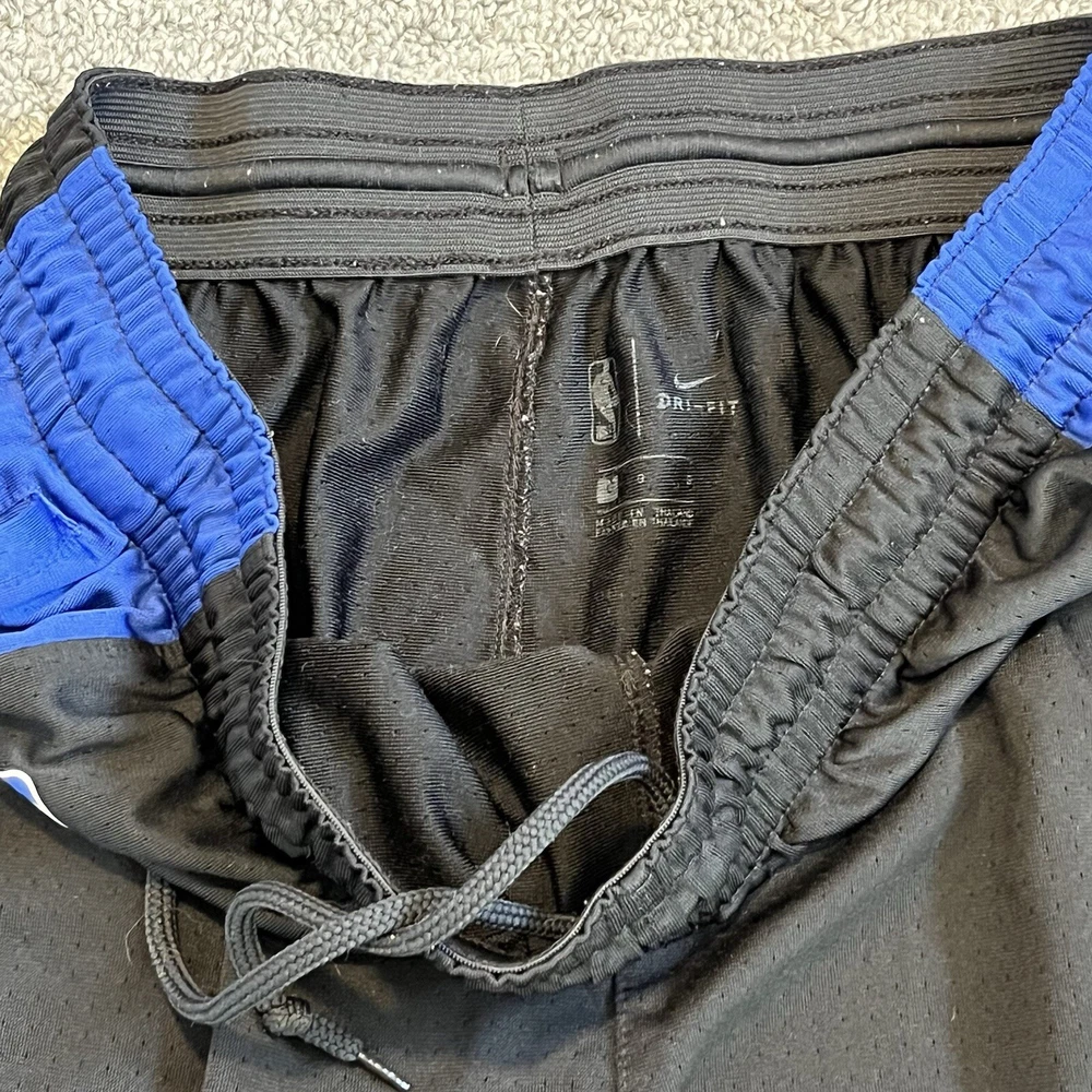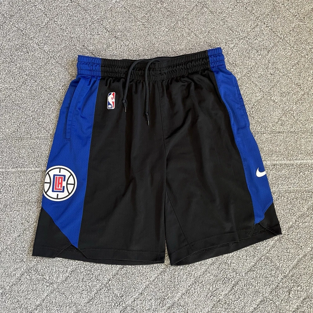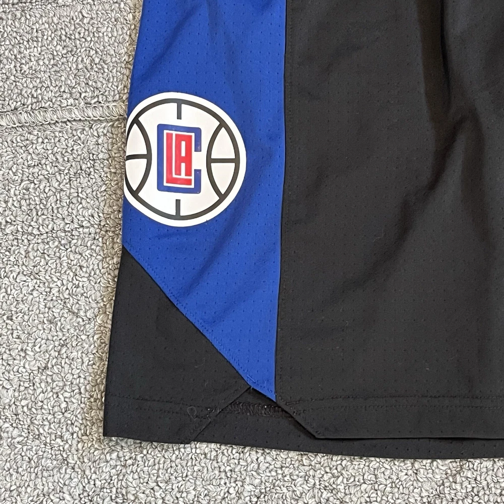 Nike Dri Fit LA Clippers Pro Shorts Mens Size Large Black Blue Vented NBA See measurements for accurate fit Waist 15 inches across Inseam 9 inches Rise 11 inches All measurements are done flat lay