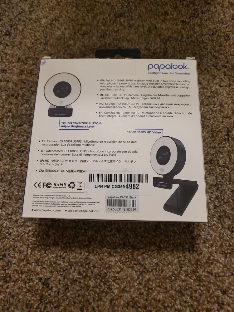 Papalook HD1080P Live Streaming Webcam Model:PA552 USB Plug & Play. Shipped with USPS Ground Advantage.
