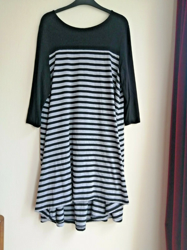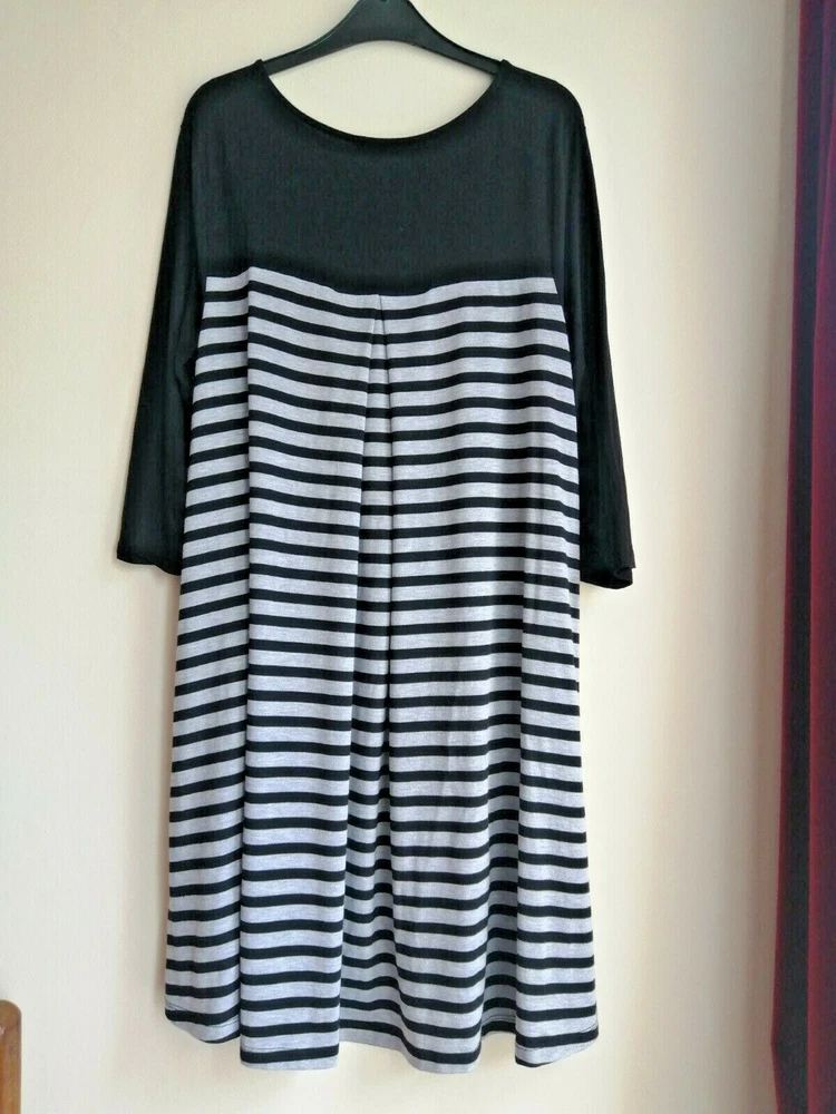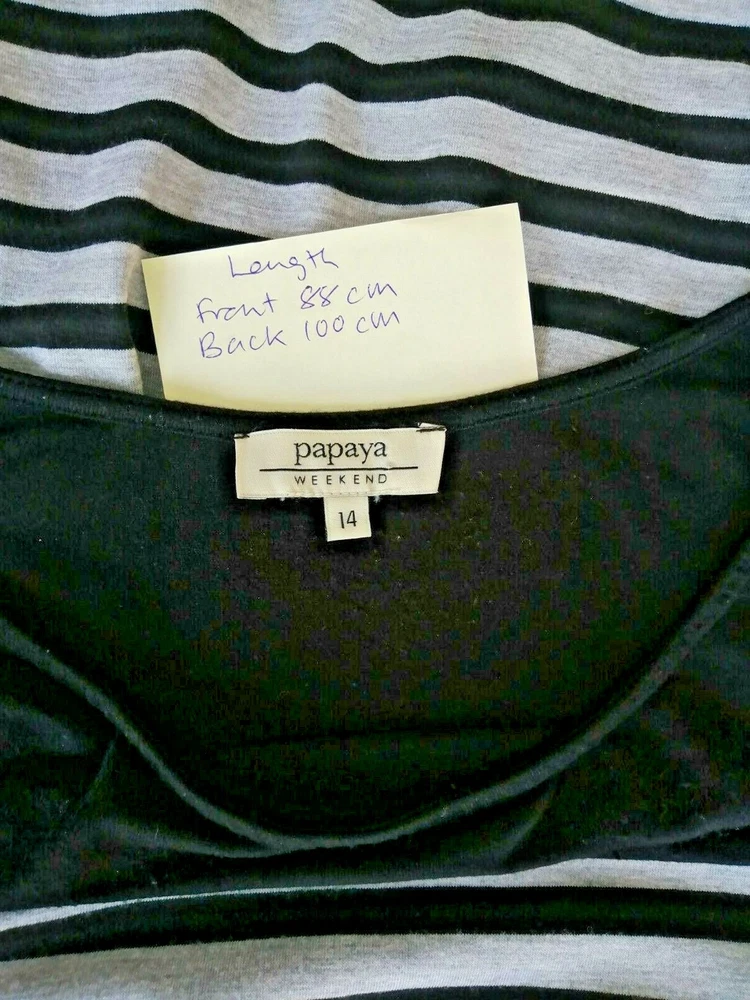 Papaya Weekend Black and White Striped Jersey Loose Fit Dress Size 14 Slight bobbling under the arms. See pics for details.