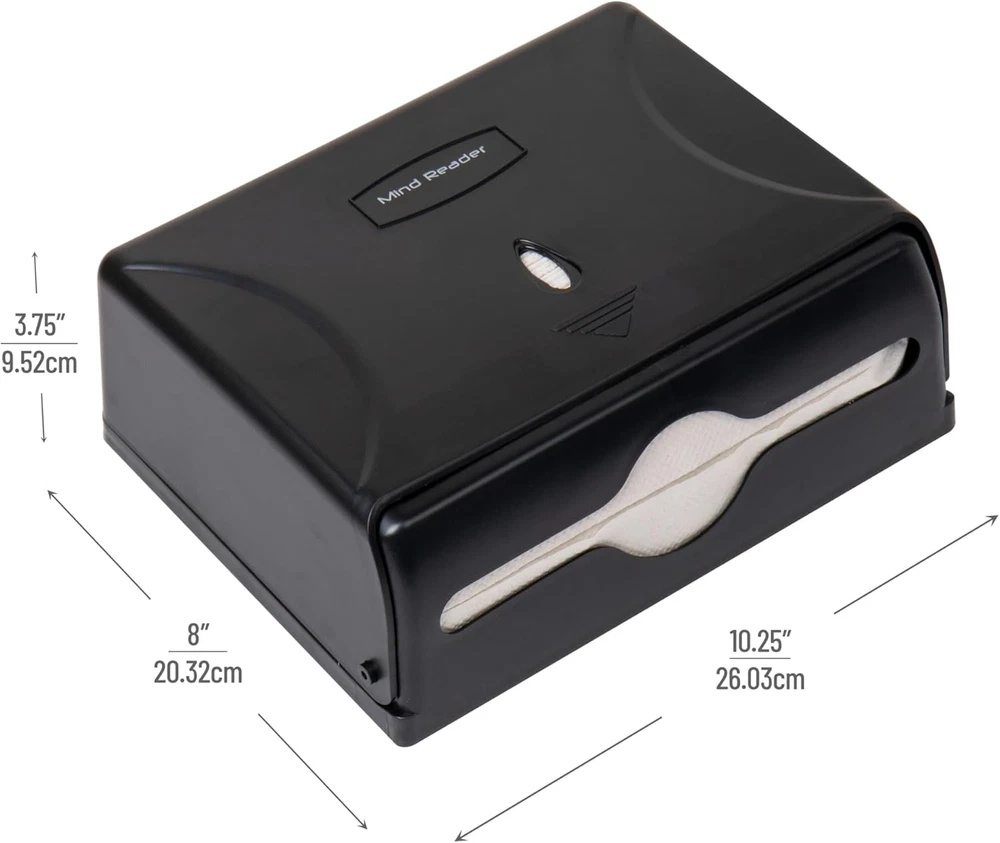 100% Plastic Quick and Easy Installation: This paper towel holder comes with all the necessary hardware, making it a breeze to mount on any wall. It can be installed in minutes and is ready for immediate use Versatile Design: This towel dispenser holds C-Fold/Multifold paper towels measuring 9.25 inches wide (23.5 cm) Convenient and Practical: The press-in top button releases the front panel, enabling users to replenish paper towels with ease. The window in the center allows for easy monitoring of the paper towel levels, alerting you when a refill is required Effortless Maintenance: Cleaning the dispenser is effortless, with the outside surface requiring nothing more than a simple wipe down with your preferred bathroom or kitchen cleaning supplies or mild soap and water Perfect Size: Measuring 10.25 long x 3.75 wide x 8 inches high (26.04 x 9.53 x 20.32 centimeters), this paper towel dispenser is compact enough to fit seamlessly in any space while still providing ample storage for paper towels Efficient Wall-Mounted Paper Towel Dispenser - Streamline Your Hand Washing Experience Enhance your hand washing routine with our convenient Wall-Mounted Paper Towel Dispenser. The easy assembly process enables you to mount the dispenser to the wall in minutes, ensuring that paper towels are readily available right after washing your hands. Designed to hold C-fold paper towels measuring 8.9 inches wide (22.5 cm), this dispenser is perfect for any handwashing station. With a one-at-a-time dispensing mechanism, this unit helps reduce paper towel waste while providing a more hygienic experience. Its solid construction and design prevent ripped and torn towels, ensuring each sheet remains intact and usable. The front window allows you to monitor the paper towel levels effortlessly and determine when a refill is necessary. When it's time to replenish, the push-button mechanism on the top of the dispenser makes the process quick and simple. Upgrade your hand washing experience with our Efficient Wall-Mounted Paper Towel Dispenser, and enjoy a cleaner, more streamlined routine. REVISED ON 11/11/2024