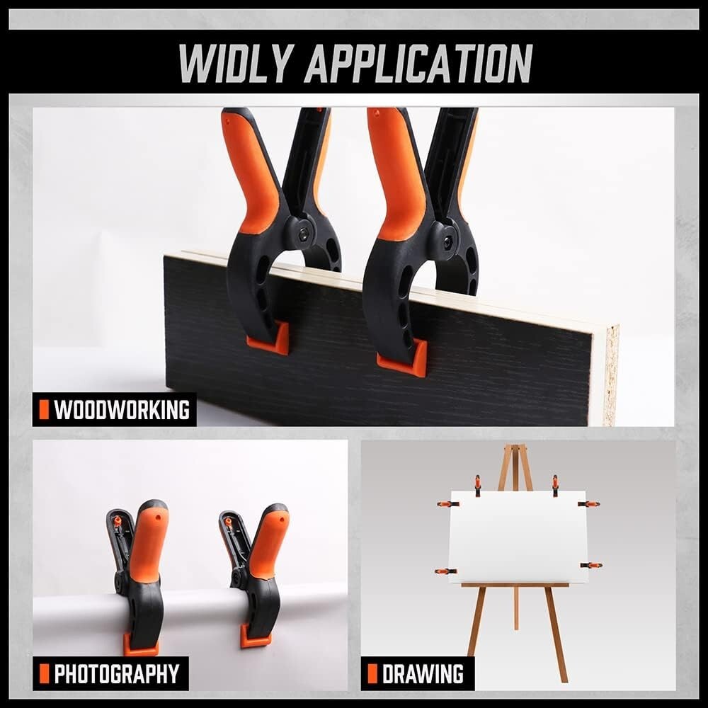 1. El juego completo incluye 4 abrazaderas de barra de 6", 2 abrazaderas de barra de 12" y 2 abrazaderas de resorte de 6", que se adaptan a diferentes necesidades. 2. Las abrazaderas de 6" son aptas para separadores de hasta 11-9/64" y las de 12" son aptas para separadores de hasta 17-21/64", lo que ofrece a los clientes más opciones. 3. El robusto cuerpo de nailon y la barra de acero endurecido de alta calidad ofrecen buena resistencia al impacto y soportan el uso frecuente en la obra. 4. El diseño de botón de cambio rápido permite que la abrazadera en F también funcione como separador. Simplemente presione el botón rojo, retire las mordazas, inviértalas y vuelva a colocarlas en su lugar para obtener el separador deseado. 5. Con una capacidad de compresión de hasta 150 lb y una construcción de trinquete metálico, nuestras abrazaderas de pértiga son perfectas para carpintería y reparaciones domésticas. Ligeras, resistentes y duraderas, se pueden usar durante mucho tiempo. La almohadilla está hecha de un material flexible y... Textura antideslizante que mejora la fuerza de sujeción. El diseño de liberación rápida facilita su uso.