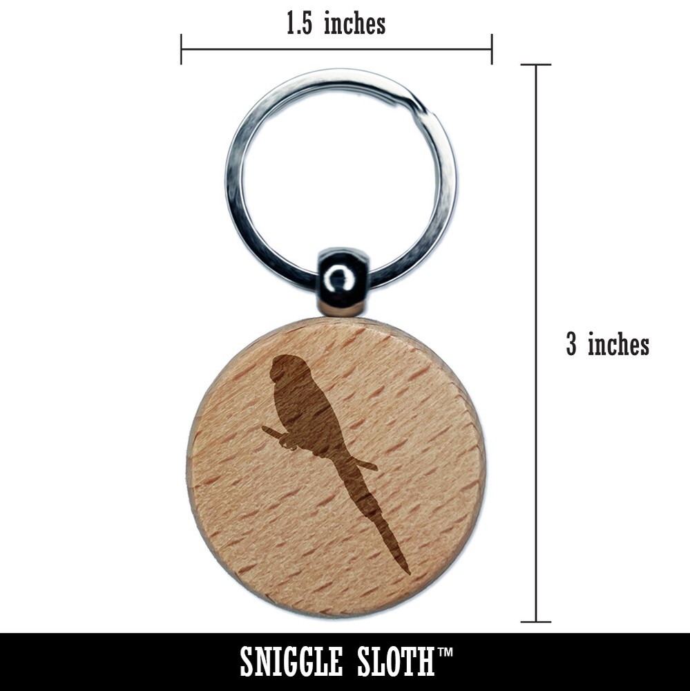 Parakeet Bird Engraved Wooden Round Keychain Charm with Branch Design