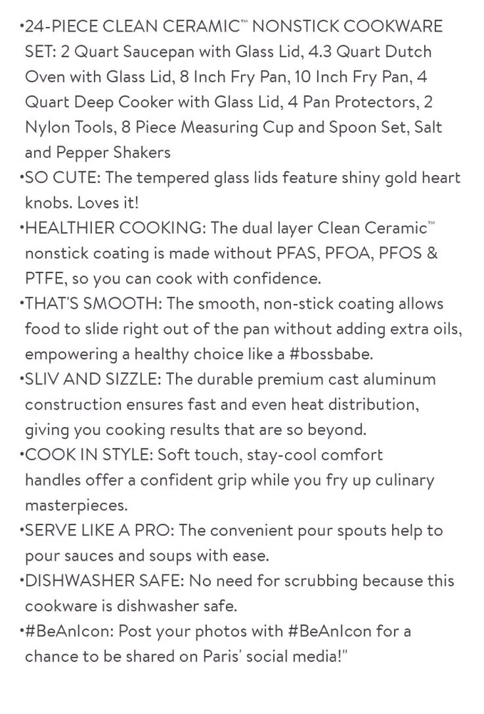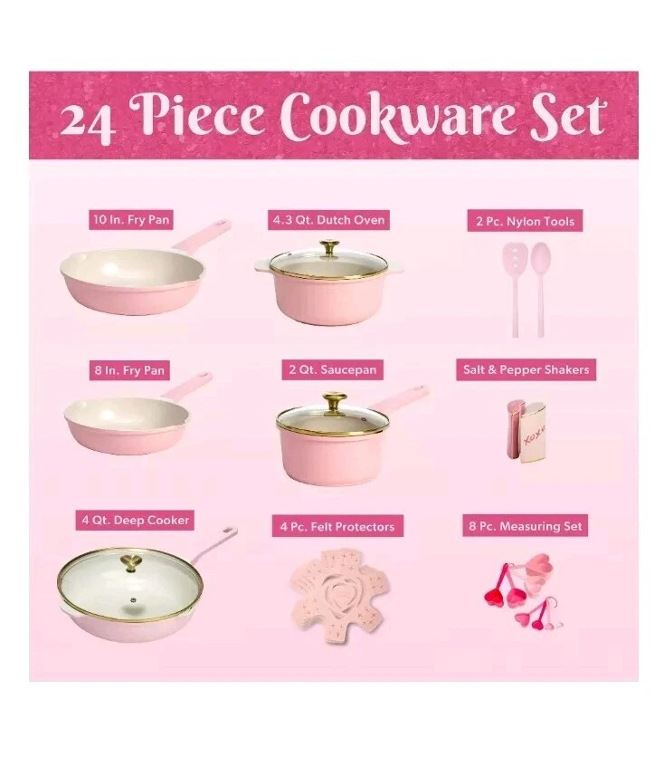 Paris Hilton Ceramic 24-piece Non-stick Cast Aluminum Cookware Pots And Pans