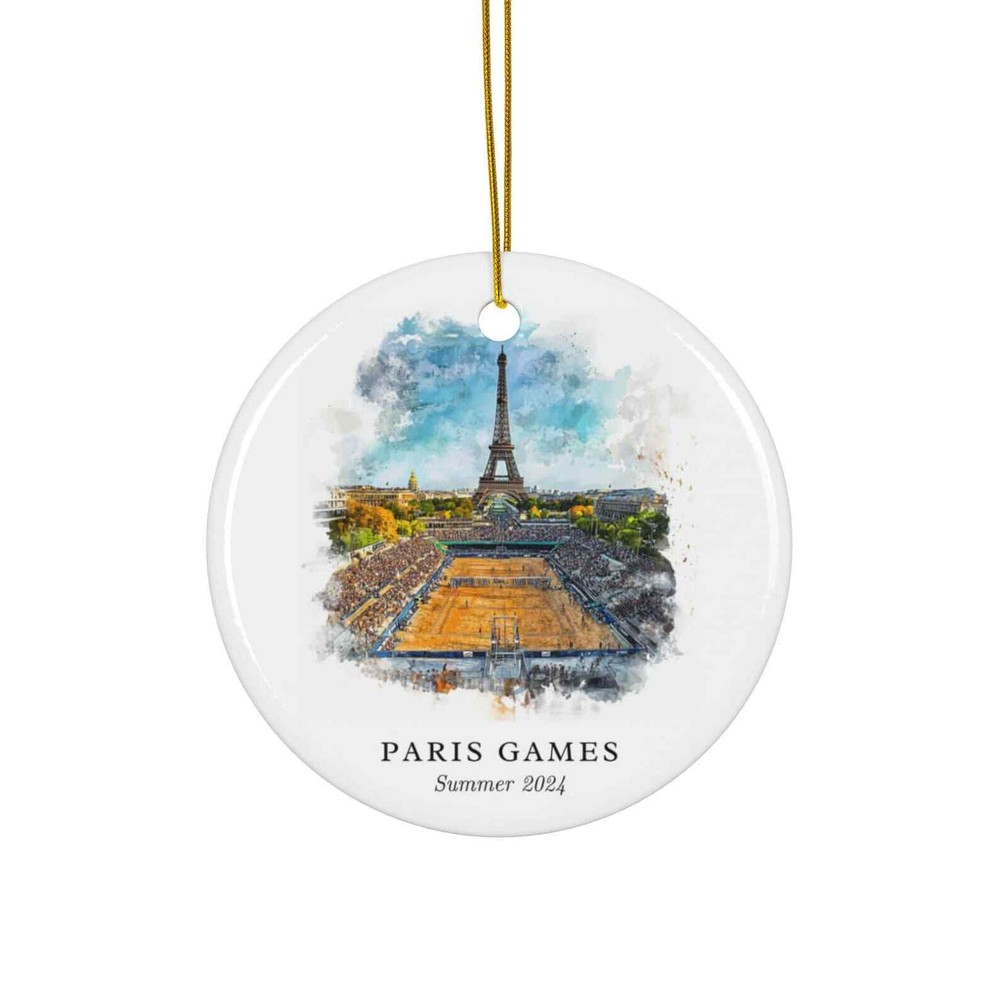 Paris Olympic Games Ornament Unique Summer Games Souvenir Paris Olympics Decor And Authentic Paris Christmas Gift Material: Ceramic Color: White Shapes: Circle, star, heart and oval Can be printed on both sides Imprint full-color artwork, photos, or logos Hole for hanging string and hanging string included Printed in the USA