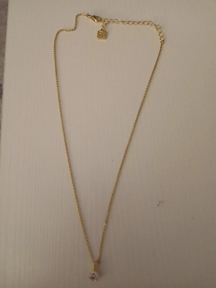 New without box. beautiful piece! very sparkly! The Park Lane Gold Tone Round Faux Diamond Solitaire Necklace is a stunning piece of fashion jewelry that exudes elegance and style. The necklace features a simulated white/colorless round rhinestone set in a classic solitaire setting, making it perfect for various occasions such as engagements, weddings, anniversaries, and birthdays. The 18-inch chain necklace also makes a stylish statement piece for those special moments. Signed by the brand Park Lane, this necklace is a timeless and eye-catching accessory for any outfit.