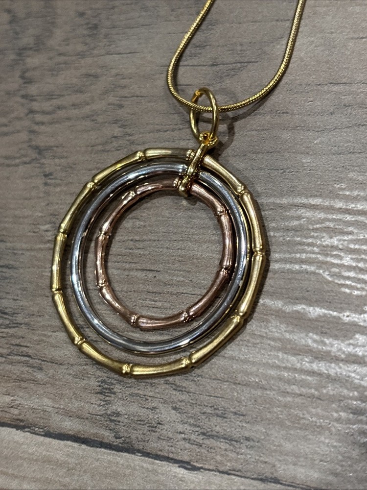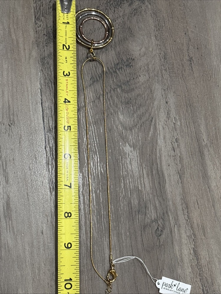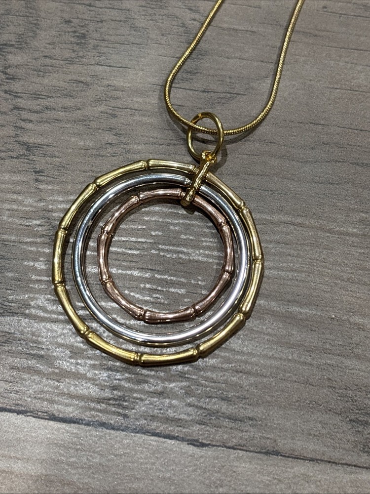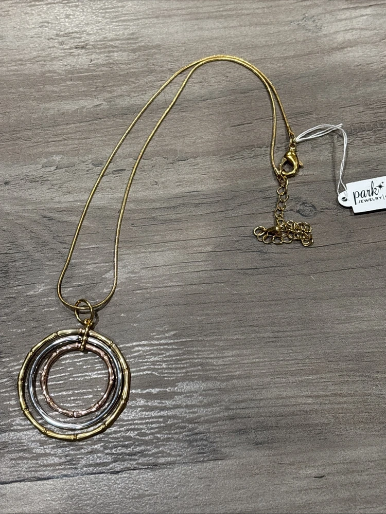 The Park Lane Gold Tone Circle Pendant is a stylish and versatile piece of jewelry suitable for everyday wear. The pendant features a round shape with a lobster closure, making it easy to put on and take off. The pendant comes in a beautiful combination of gold, silver, and rose gold tones, adding a touch of elegance to any outfit. The adjustable rope chain adds a unique touch to the design, making it a fashionable and chic accessory for any wardrobe.