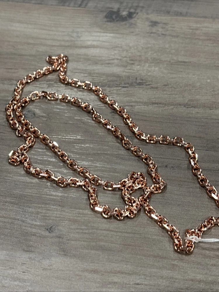 The Park Lane Verona Rose Gold Chain Necklace is a stylish and elegant piece of jewelry measuring 32" in length. The lobster closure ensures a secure fit, making it suitable for everyday wear. The rose gold color adds a touch of beauty to any outfit, making it a versatile accessory for any occasion. The chain style and sleek design of the necklace make it a timeless and classic addition to any jewelry collection.