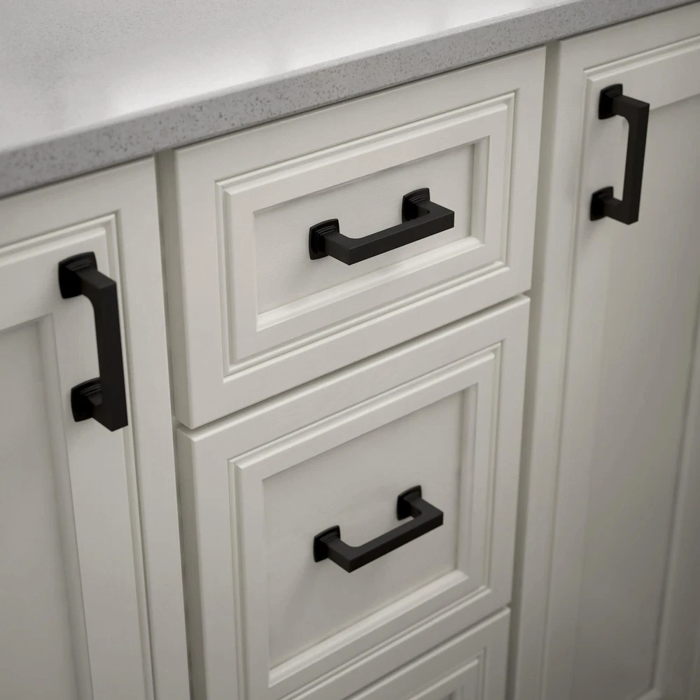The Parow cabinet pull collection makes it easy to give an updated look to your kitchen, bathroom, office, or furniture. The Casual cabinet handle design makes it the perfect addition to your cabinets, desk, and even dresser drawers. Available in multiple finishes and pack sizes to fit any home decor project and cabinet hardware style. STYLE: Easily update your kitchen and bathroom cabinets or furniture with our casual cabinet hardware collection. MATERIAL: Our matte black finish provides a complimentary tone to the metal handles. SIZING: The collection of drawer pulls measures 3 (76mm) center-to-center and comes in a pack of 10, so you can make your cabinet upgrades in bulk. DURABLE: We work with highly durable materials to ensure your cabinets and drawers are equipped with top quality hardware that will last for years. EASE OF USE: Our parow cabinet drawer handles are specially designed for easy installation and use.
