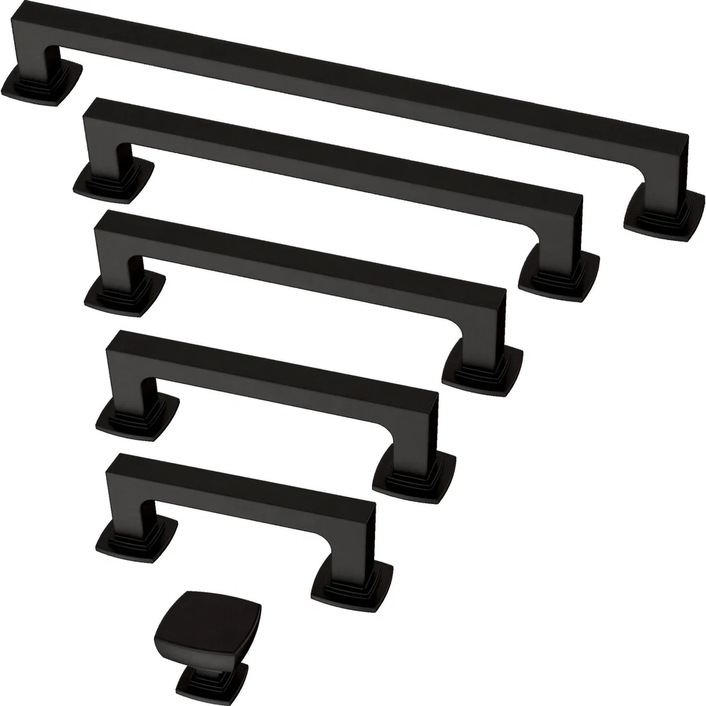 The Parow cabinet pull collection makes it easy to give an updated look to your kitchen, bathroom, office, or furniture. The Casual cabinet handle design makes it the perfect addition to your cabinets, desk, and even dresser drawers. Available in multiple finishes and pack sizes to fit any home decor project and cabinet hardware style. STYLE: Easily update your kitchen and bathroom cabinets or furniture with our casual cabinet hardware collection. MATERIAL: Our matte black finish provides a complimentary tone to the metal handles. SIZING: The collection of drawer pulls measures 3 (76mm) center-to-center and comes in a pack of 10, so you can make your cabinet upgrades in bulk. DURABLE: We work with highly durable materials to ensure your cabinets and drawers are equipped with top quality hardware that will last for years. EASE OF USE: Our parow cabinet drawer handles are specially designed for easy installation and use.