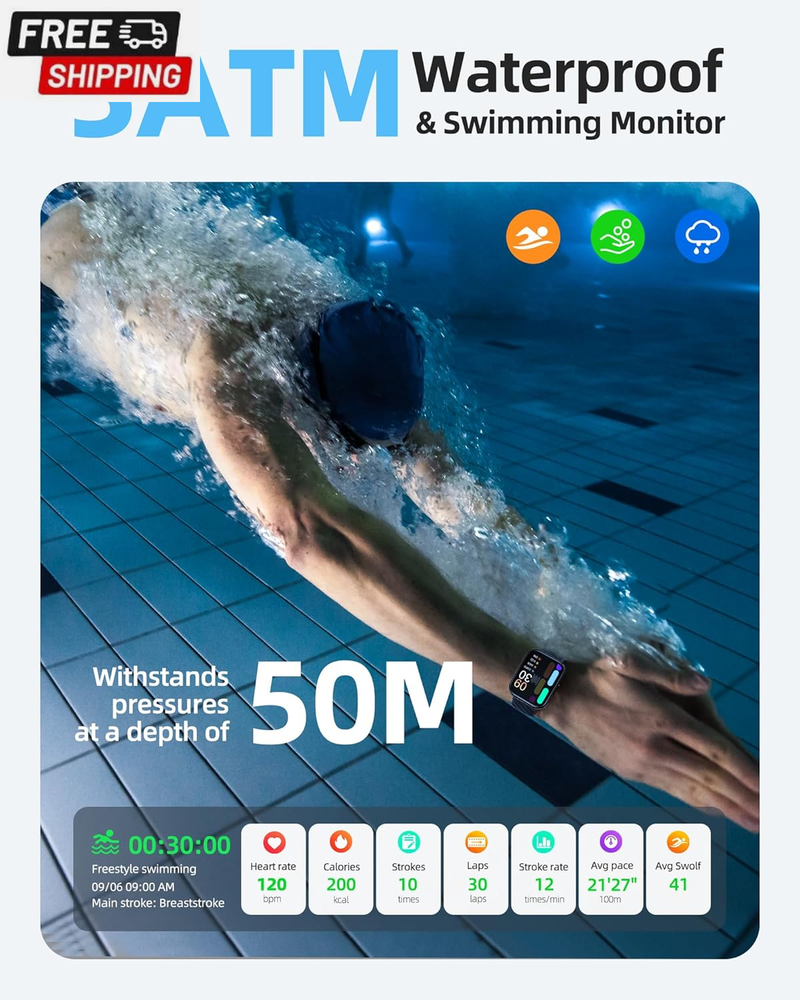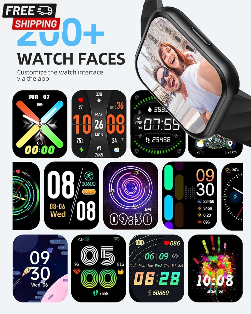Fast Shipping On All Items 30 Days Money Guarantee Customer Support Excellent Service 100% Satisfaction Satisfaction Guaranteed Parsonver Smart Watch, 5ATM Waterproof Watch for Swimming, Fitness Activity Tracker with 110+ Sports Modes, Heart Rate/Sleep/Spo2/Calories Monitor, Pedometer, Fitness Watch for Android & Iphone, Black Specification Item model number FF2 Battery Capacity 320 Milliamp Hours Operating System Compatible with iOS 9.0/Android 6.0 or above Smartphones Battery Cell Composition Lithium Ion Color Black Memory Storage Capacity 512 MB Product Dimensions 9.84 x 1.5 x 0.43 inches Connectivity Technology Bluetooth Item Weight 37 Grams Manufacturer Parsonver Shape Square Wireless Communication Standard Bluetooth Standing screen display size 1.8 Inches Batteries 1 CR5 batteries required. (included) GPS No GPS Screen Size 1.8 Inches Special Feature function(f) {var _np=(window.P._namespace("DetailPageProductOverviewTemplatesJava"));if(_np.guardFatal){_np.guardFatal(f)(_np);}else{f(_np);}}(function(P) { P.when('A').execute(function(A){ A.on('a:truncate:po-attribute-truncate-2:updated', function(data) { var isTruncated = !data.truncateInstance.getIfTextFits(); var seeMoreElement = document.getElementById('po-attribute-see-more-id-2'); if(seeMoreElement) { seeMoreElement.style.display = isTruncated ? '' : 'none'; } }) }); })); 5ATM Waterproof for Swimming Monitor, 24H Heart Rate/Blood Oxygen(SpO2)/Sleep/Stress Monitor, 110 +Sports Modes, SMS, Text and App Smart Notifications, 200+ Custom Watch Faces, Multiple Sports Tracking, Stopwatch, Exercise Tracking, Alarm Clock, Music Control, Camera Control, Email Notifications, Weather, Compatible With iPhone and Android, Timer, Sedentary Reminder, Activity Data, Breathing Training Monitoring, Women Health Monitoring, Message Reminders, Find Your Phone, Exercise Records, Lightweight and Portable Design, Step, Calorie, and Distance Tracking, Daily Activity Tracking, Brightness Adjustment, Raise To Wake Feature, etc. See more Size 1.8" Item Description 【5ATM WATERPROOF SWIMMING WATCH – THE PERFECT SWIM TRACKER AWAITS, FOR SWIMMING & DIVING】Dive into performance with the Parsonver 5ATM Waterproof Swimming Watch—designed for serious swimmers and daily wear. With a 50m water resistance rating, it automatically tracks Butterfly, Backstroke, Breaststroke, and Freestyle, offering key swim metrics like stroke count, rate, and SWOLF. For best results, avoid using buttons underwater or wearing the watch in hot baths, saunas, or steam rooms. 【SMART WATCH FITNESS TRACKER WITH 110+ SPORTS MODES】Elevate your fitness journey with our versatile fitness watch, offering over 110 sports modes to suit every lifestyle, whether indoors or outdoors. Whether you enjoy walking, running, cycling, swimming, practicing yoga, or hitting the gym, this activity tracker watches your heart rate, steps, and calories burned, helping you make the most of every workout. Embrace the freedom to explore new activities and turn your daily efforts into meaningful progress. Stay motivated and connected to your health goals with a stylish sport watch that fits seamlessly into your life! 【24-HOUR ACCURATE HEALTH MONITORING & ALL-DAY ACTIVITY TRACKING】Unlock your health potential with the Smart Watch for Men and Women! This stylish heart rate monitor/sleep tracker provides real-time heart rate monitoring, blood oxygen measurement, and sleep analysis, keeping you informed about your wellness. Effortlessly track daily steps, calories burned, and activity time, while receiving insights into stress levels and sedentary alerts to stay active. Additionally, with specialized menstrual cycle tracking, women can manage their health with confidence. Don’t miss out—make the Parsonver Smart Health Watch your essential companion for a healthier, more vibrant life! 【CALL, TEXT, AND SMART MESSAGE NOTIFICATIONS】Stay effortlessly connected with incoming call notifications, SMS, emails, and real-time alerts from your favorite apps like WhatsApp, LinkedIn, Instagram, and Twitter, all seamlessly synced with your mobile app; enjoy the convenience of managing your communications directly from your wrist—easily reject calls without the need to reach for your phone. (Note: While you can decline calls on the watch, direct answering or replying isn’t available.) 【1.8-INCH VIBRANT HD TOUCHSCREEN WITH 200+ CUSTOMIZABLE WATCH FACES】Experience the future of smartwatch technology with the Parsonver smartwatch, featuring a stunning 1.8-inch HD touchscreen that delivers breathtaking visuals and an immersive experience. Enjoy crystal-clear visibility in any lighting condition and easily refresh your style with over 200 customizable watch face options. Plus, personalize your digital cool watch by uploading your favorite photos, making it a unique expression of your individual style. Stand out every day with Parsonver pedometer watch! 【EXPLORE MORE AMAZING FEATURE】This Step and Calorie Tracker Watch goes beyond simply monitoring your daily activities; it’s packed with a wealth of practical functionalities! Enjoy all-day activity tracking, workout logs, breathing exercises, women’s health monitoring, weather updates, music control, stopwatch, alarms, timers, camera control, brightness adjustment, sedentary reminders, phone finder, wrist-raise wake-up features, and more. It’s your personal health and lifestyle assistant, always by your side to help you manage your life and health, ensuring you stay energized and vital every day! 【EXTENDED BATTERY LIFE & BROAD COMPATIBILITY】Enjoy up to 7 days of use or 40 days on standby with a single charge—no more daily charging anxiety! Powered by a high-efficiency battery and fast charging. Smoothly syncs with Android 6.0+ and iOS 9.0+ smartphones for instant message and app alerts. Not compatible with tablets, computers, or any non-smartphone devices. Smart, stylish, and made to keep up with your lifestyle. 【24/7 FRIENDLY SUPPORT & THE PE