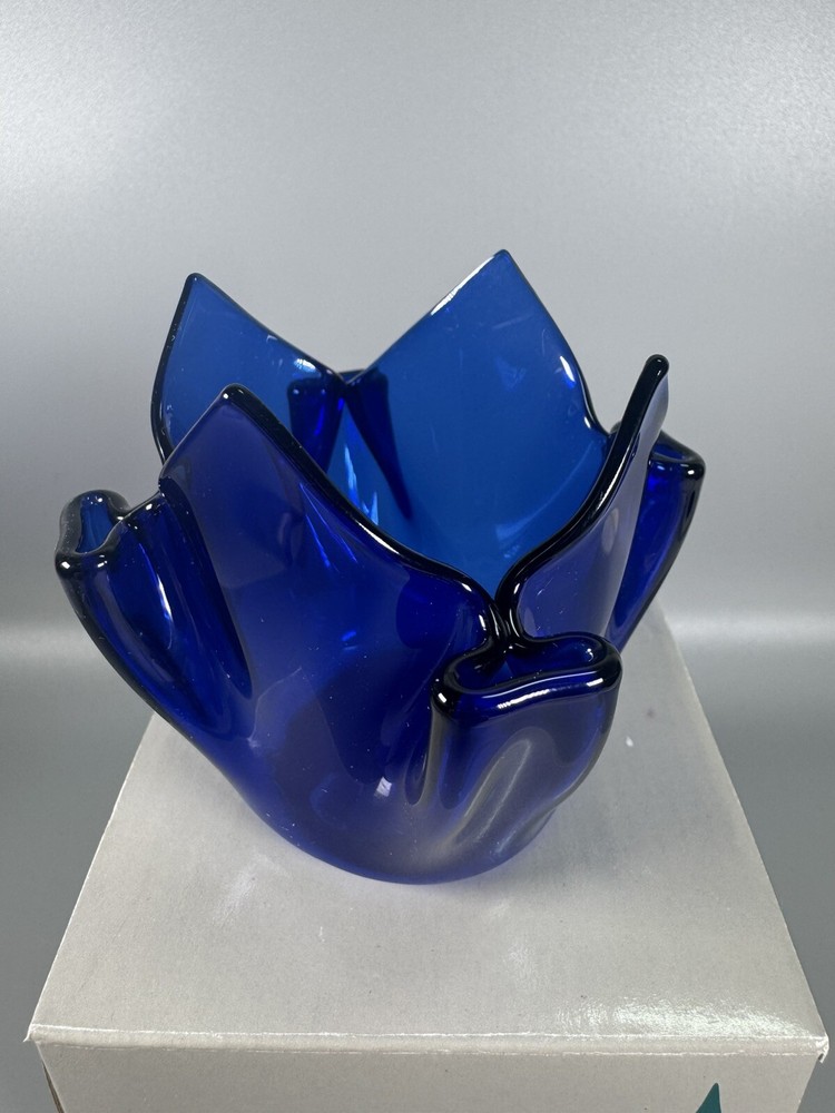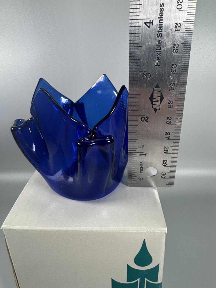 Partylite Sapphire Glass Candle Holder PO321 – Cobalt Blue Crinkle Design Item Description: This listing is for a beautiful Partylite Sapphire Candle Holder (model PO321), featuring a striking cobalt blue crinkle glass design. • Brand: Partylite • Color: Sapphire Blue / Cobalt • Material: Glass • Approx. Height: 3.5 inches (9 cm) • Made in Taiwan expressly for Partylite • Comes in original box with product info in multiple languages Perfect for tealight or votive candles, this decorative holder adds a bold pop of color to any room. Great as a centerpiece or collectible home décor piece. Condition: Excellent pre-owned condition. No chips or cracks. Original box included (box has minor wear). Shipping: Ships securely with tracking. Fast dispatch.