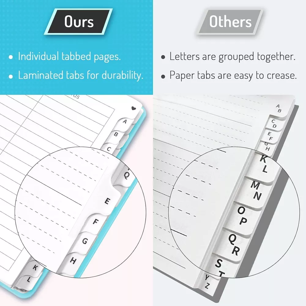 This password book is the perfect solution for keeping your passwords organized and secure. With individual alphabetical tabs, you can easily find the password you need without having to search through a messy pile of papers. The book is small and compact, measuring 4.2"x5.4", and is made of high-quality paper that is durable and long-lasting. The sky blue color adds a pop of color to your desk, and the book weighs only 4.6 ounces, making it easy to transport with you on the go. Whether you're using it for personal or professional purposes, this password book is a must-have for anyone who needs to keep their passwords organized and secure.