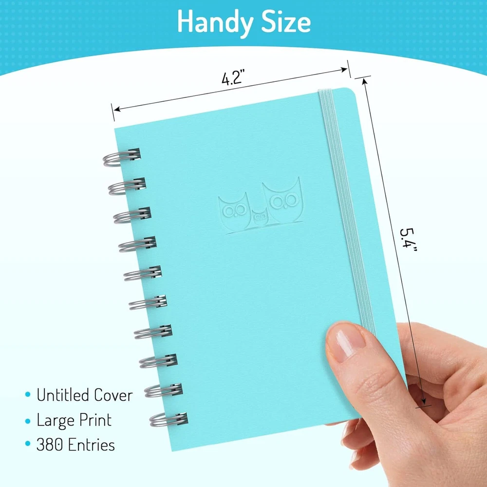 Individual A-Z Tabs for Quick Access: No need for annoying searches! With individual alphabetical tabs, this password keeper makes it easier to find your passwords in no time. It also features an extra tab for your most used websites. All the tabs are laminated to resist tears. Handy Size & Premium Quality: Measuring 4.2" x 5.4", this password notebook fits easily into purses or pockets, which is handy for accessibility. With sturdy spiral binding, this logbook can lay flat for ease of use. 120 GSM thick paper to reduce ink leakage. Never Forget Another Password: Bored of hunting for passwords or constantly resetting them? Then this password book is absolutely a lifesaver! Provides a dedicated place to store all of your important website addresses, emails, usernames, and passwords. Saves you from password forgetting or hackers stealing. Simple Layout & Ample Space: This password tracker is well laid out and easy to use. 120 pages totally offer ample space to store up to 380 website entries. It also provides extra pages to record additional information, such as email settings, card information, and more. Discreet Design for Secure Password Organization: With no title on the front to keep your passwords safe, it also has space to write password hints instead of the password itself! Finished with an elastic band for safe closure. Product Description Alphabetized pages Keep your login details organized in one place. Features individual A-Z tabs for quick reference. Store important and commonly used login details at the front of the book to access them quickly. Keep all your computer-related information to hand and never miss them again. Email settings Record the details of your email accounts in a dedicated section. Extra Lined Pages Write down any extra information on the blank lined pages for ease of use. 1 Alphabetized pages 2 Most visited websites 3 Computer Information 4 Email settings 5 Blank Note Pages 1 Laminated Tabs 2 Back Inner Pocket 3 No-bleed Paper 4 Elastic Strap Portable Size Perfect Size to Keep Your Writings Handy and Secure. Make Decent Gifts