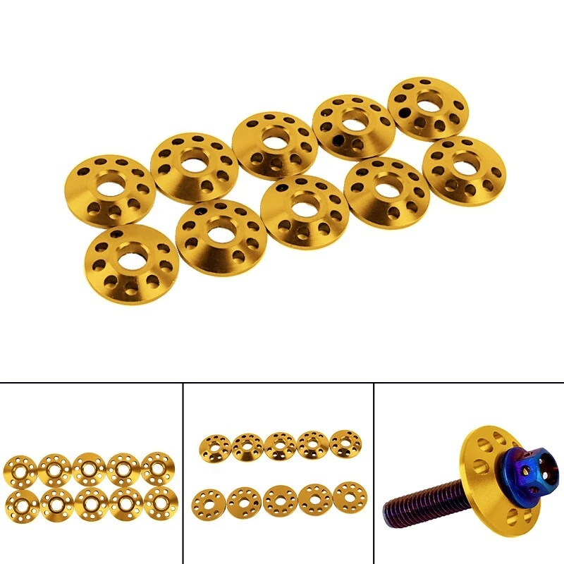Password JDM Glod ALUMINUM Fender Washers 10Pcs Bumper Bolt Engine Dress Up Kit