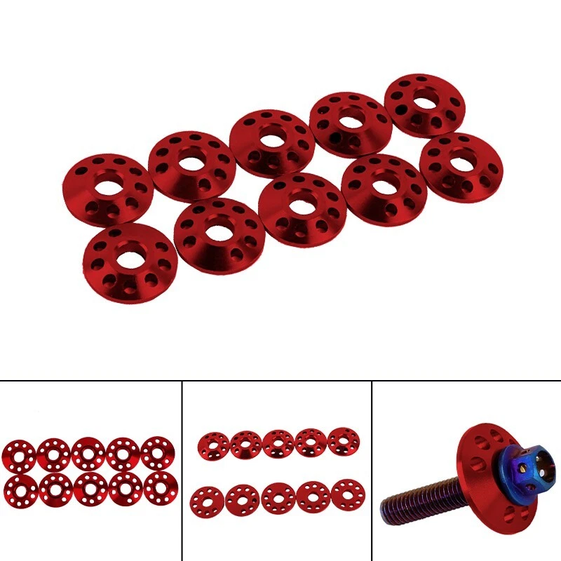 Password JDM Red ALUMINUM Fender Washers 10Pcs Bumper Bolt Engine Dress Up Kit