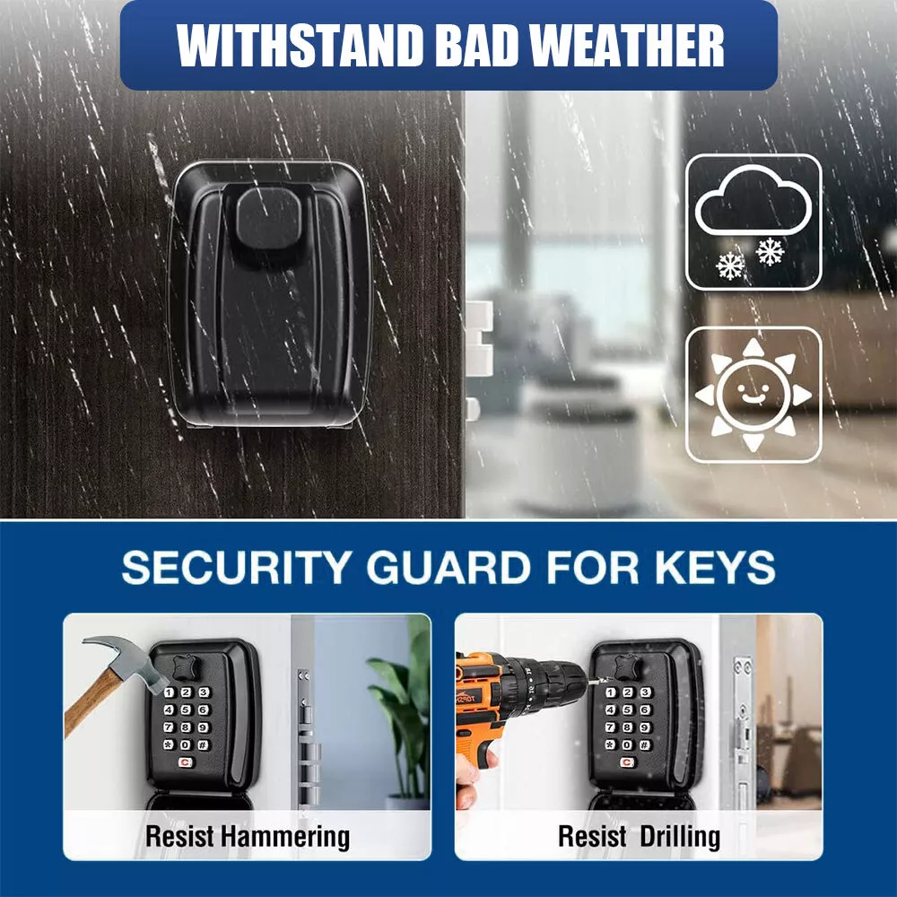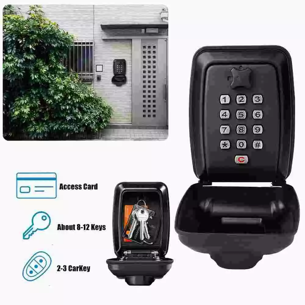 About this item šŸ”’ć€HIGH-SECURITY怑: Our key lock box is designed with a 12-digit password with thousands of combinations, making it more difficult to crack and more secure. And the password can be reset. (‼Note: Please take a photo record or record with a note after setting a new password, forgetting the password will make it unusable) šŸ”Øć€STURDY AND DURABLE怑: The lockbox for keys outdoor is made of high-strength aluminum alloy, hardened steel and heavy-duty PVC material, strong enough to withstand hammering, sawing and prying. With it you no longer need to hide your keys under carpets, vases or rocks. šŸ  怐WEATHERPROOF怑: The outdoor key lock box comes with a lid that is waterproof, rustproof and dustproof, protecting the keypad from rain, snow, sand, dust and sunlight, prolonging its life and increasing its concealment; suitable for different scenarios outdoors and indoors such as front door, garage, office or warehouse. šŸ”‘ć€LARGE CAPACITY怑: The lockbox for keys has large internal space, can hold 5-8 keys or other small objects, such as house keys, car keys, ID cards, access cards, etc. Convenient for family and friends to visit and emergency backup, as well as to provide keys to tenants, cleaners, caregivers, renovators, etc. āœ…ć€EASY TO INSTALL & USE怑: The key lockbox comes with 4 screws and 4 extension wall anchors, easy to install and fix on the wall; the included small screwdriver is convenient for you to set the password, the metal button is more convenient to use and the numbers are clearer, even the elderly can use it easily. What do you get? 1 x security key box 1 x User manual 1 x Screwdriver 1 x Packing box