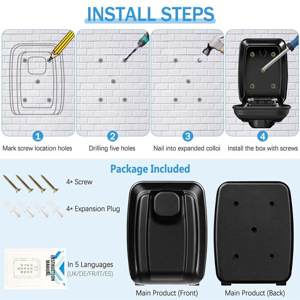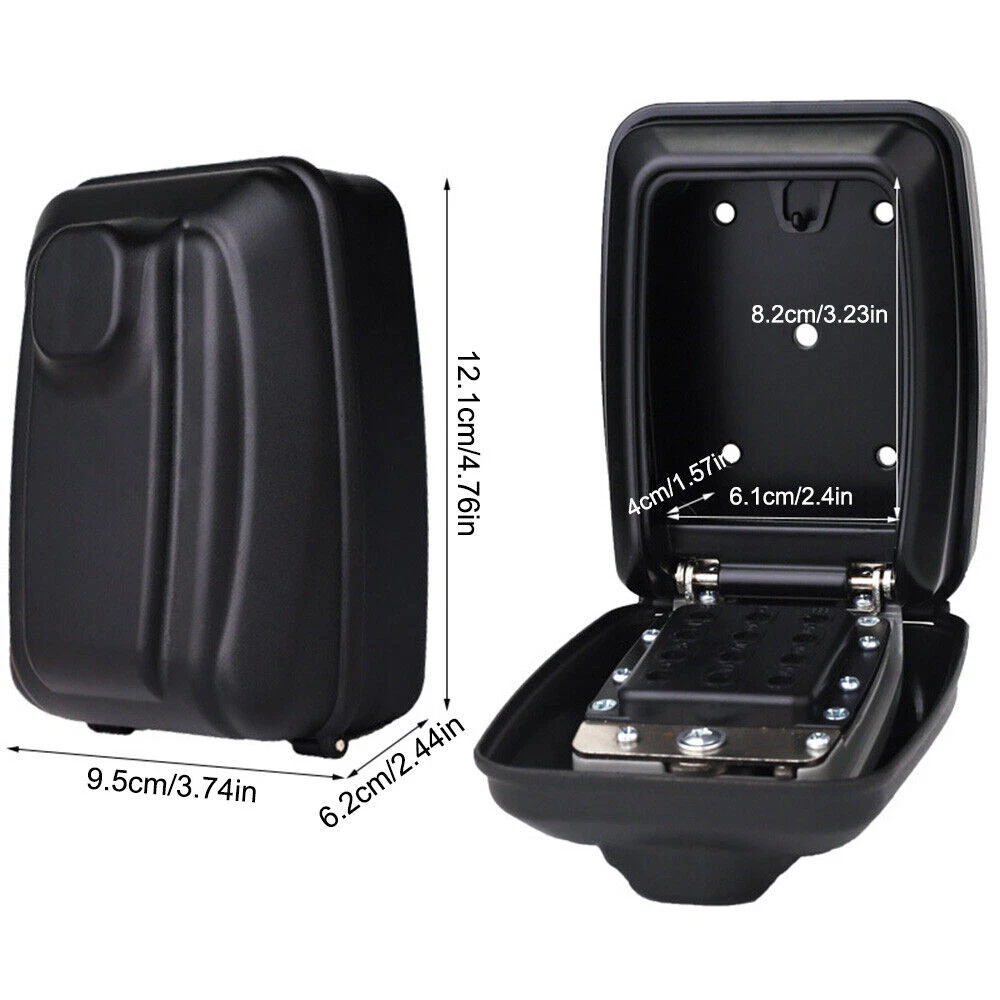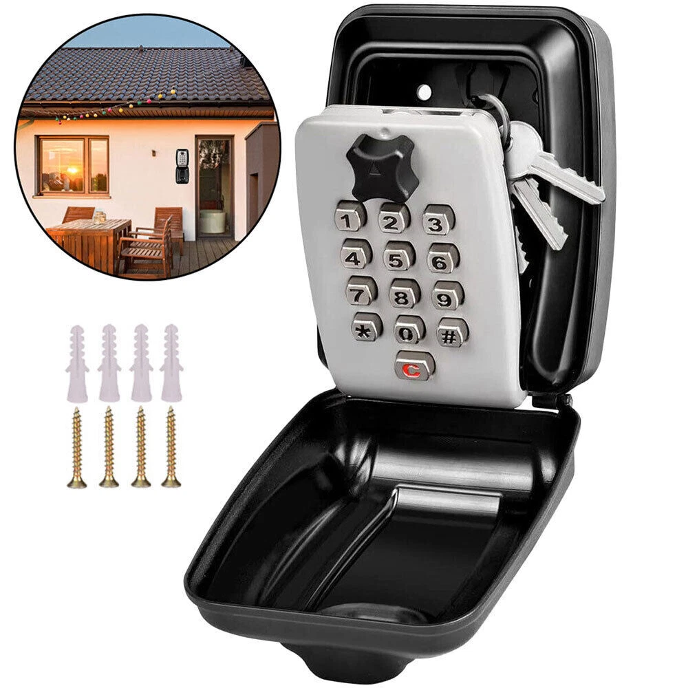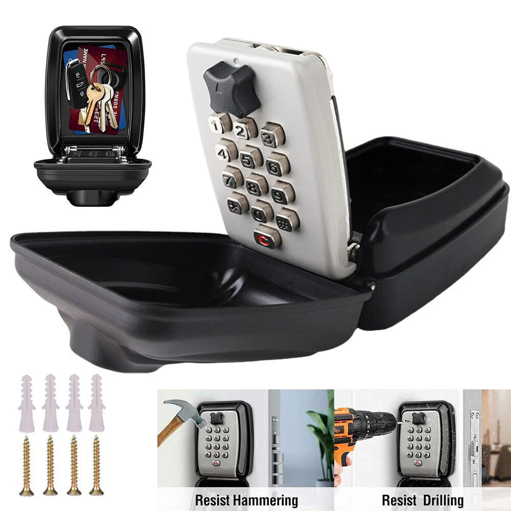 Description: [ Key Lock Box ] Open the password lock with the password you set, making it an ideal choice for authorized visitors. Our secure external key safe allows you to leave your keys outside in an emergency, or choose who can enter your house. [ Easy to Use ] This key combination lock key box adopts a 12-digit combination, provides thousands of combinations, and ensures the highest level of security. It is recommended to take a photo or write it down after setting a new password. [ Excellent Quality ] This key combination lock key box is made of high-quality zinc alloy and engineering plastic material, which provides extra resistance to hammering, sawing, and prying. [ With Weatherproof Cover ] This rust-proof key lock box is designed with a weatherproof cover to protect the box from wind, rain, snow, and dust, making it more discreet and durable. Eco-friendly paint adds resistance. [ Wide Application ] This key-safe lock box is very versatile and can hold up to 5-8 small items such as medium-sized house keys, access cards, car keys, etc. Perfect for indoor, outdoor, homes, offices, gyms, factories, and other places. Features: Enough Space The size of this key combination lock key box is about 12.1 x 9.5 x 6.2cm, which is enough volume to provide ample and highly secure internal storage space for your valuables. Easy Installation This key combination lock key box can be easily installed, and the set includes screw accessories (including self-tapping screws and expansion sleeves) and operating instructions required for installation. Wide Application This key combination lock key box can be used indoors and outdoors, is suitable for storing keys, cards, and jewelry, and is suitable for fitness enthusiasts, travel enthusiasts, rental owners, caregivers,etc. Specification: Material: Zinc Alloy and Engineering Plastics Size: 12.1 x 9.5 x 6.2 cm/ 4.7 x 3.7 x 2.4 inch Parts List: 1 x Key Lock Box 1 x Manual 4 x screws 4 x expansion screws Note: 1. It is recommended to take a photo or make a note after setting a new password. Once you forget your password, you will not be able to use the key box again. 2. Please allow slight dimension differences due to different manual measurements.